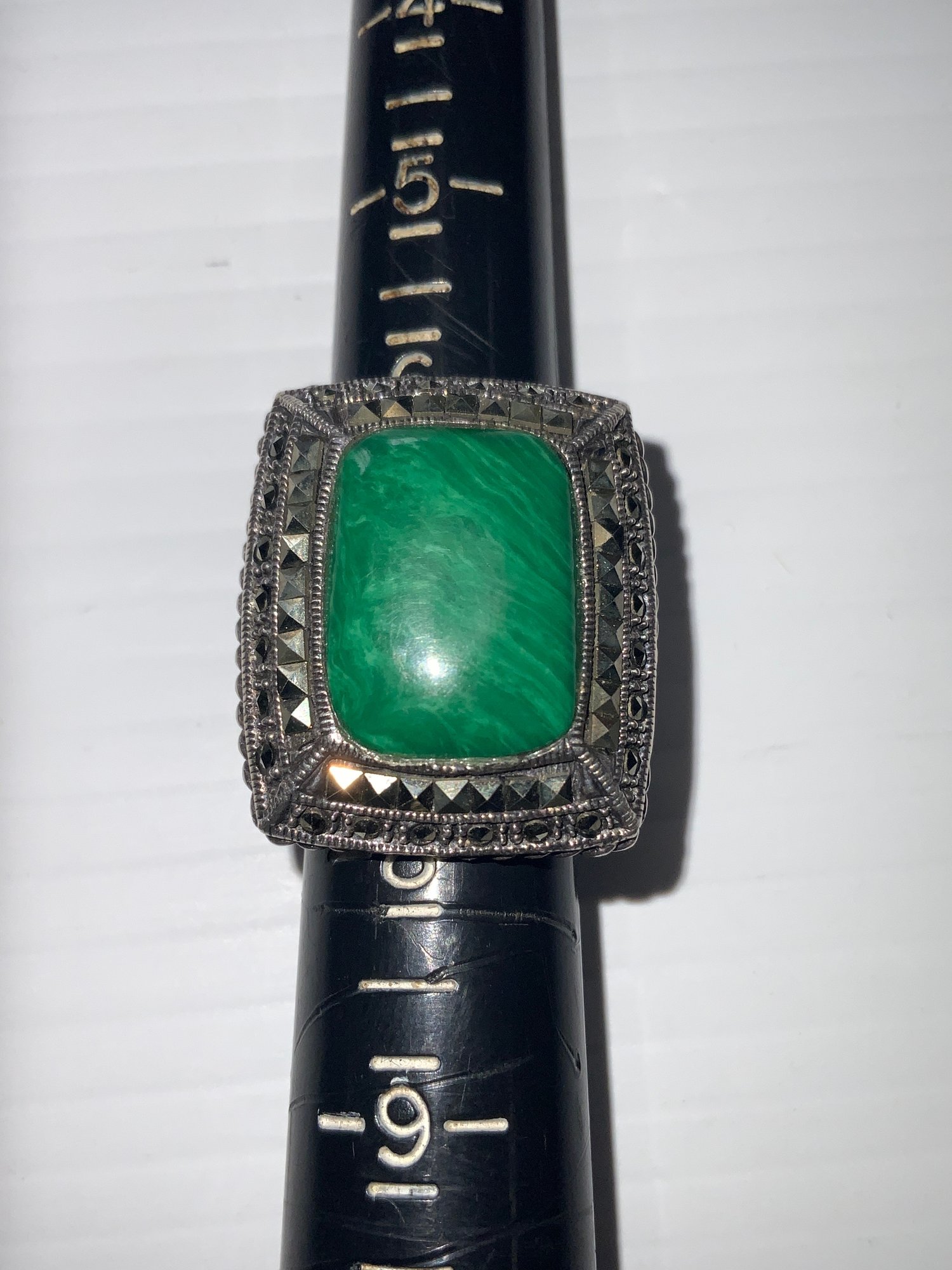 Sterling Silver Malachite And Marcasite Ring