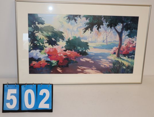 36" X 22.5" - Framed Art Work - Unknown Artist - Trees Flowers