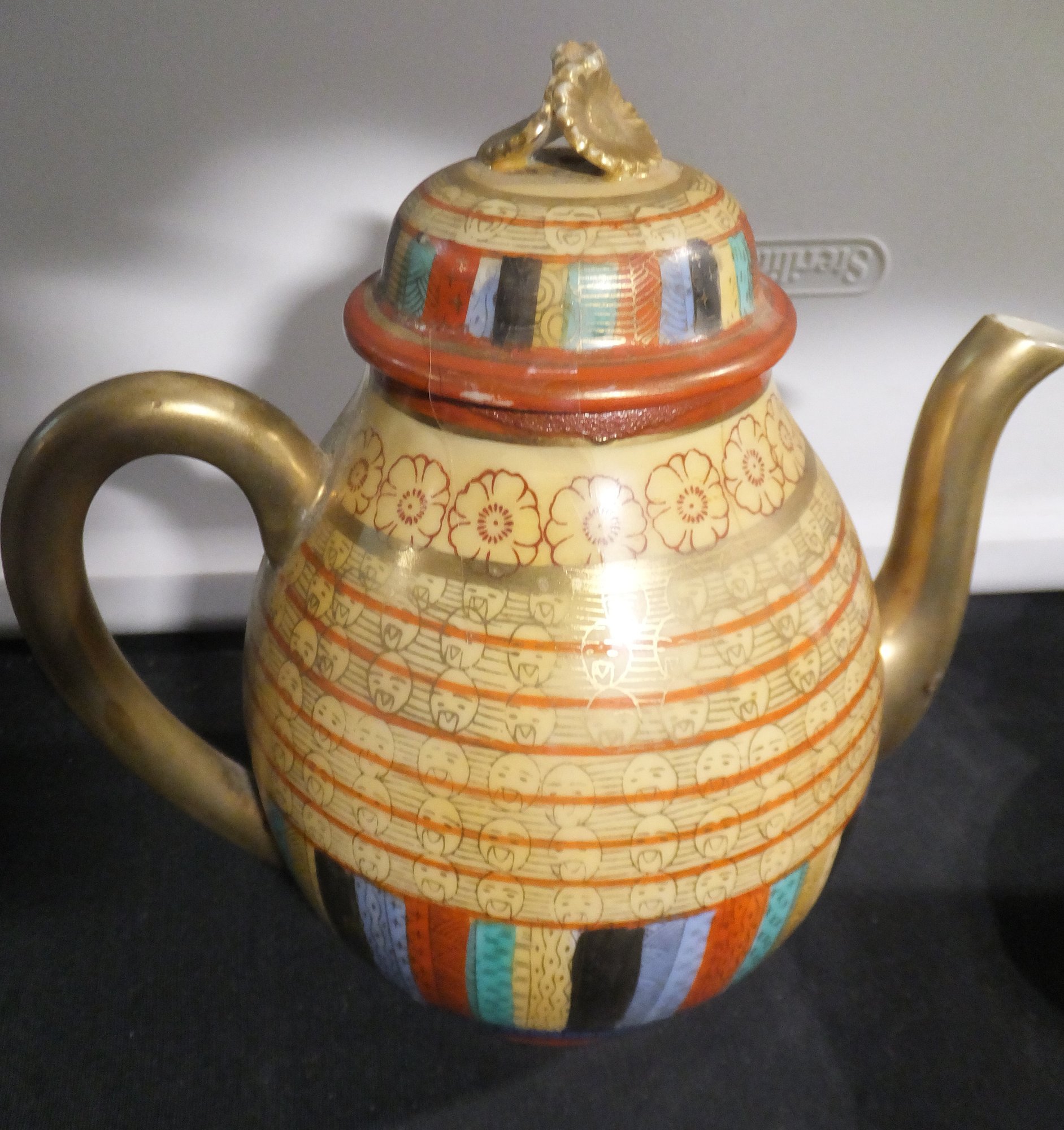 1950'S SATSUMA MADE IN JAPAN TEA POT HAS 1000 FACES AROUND THE POT
