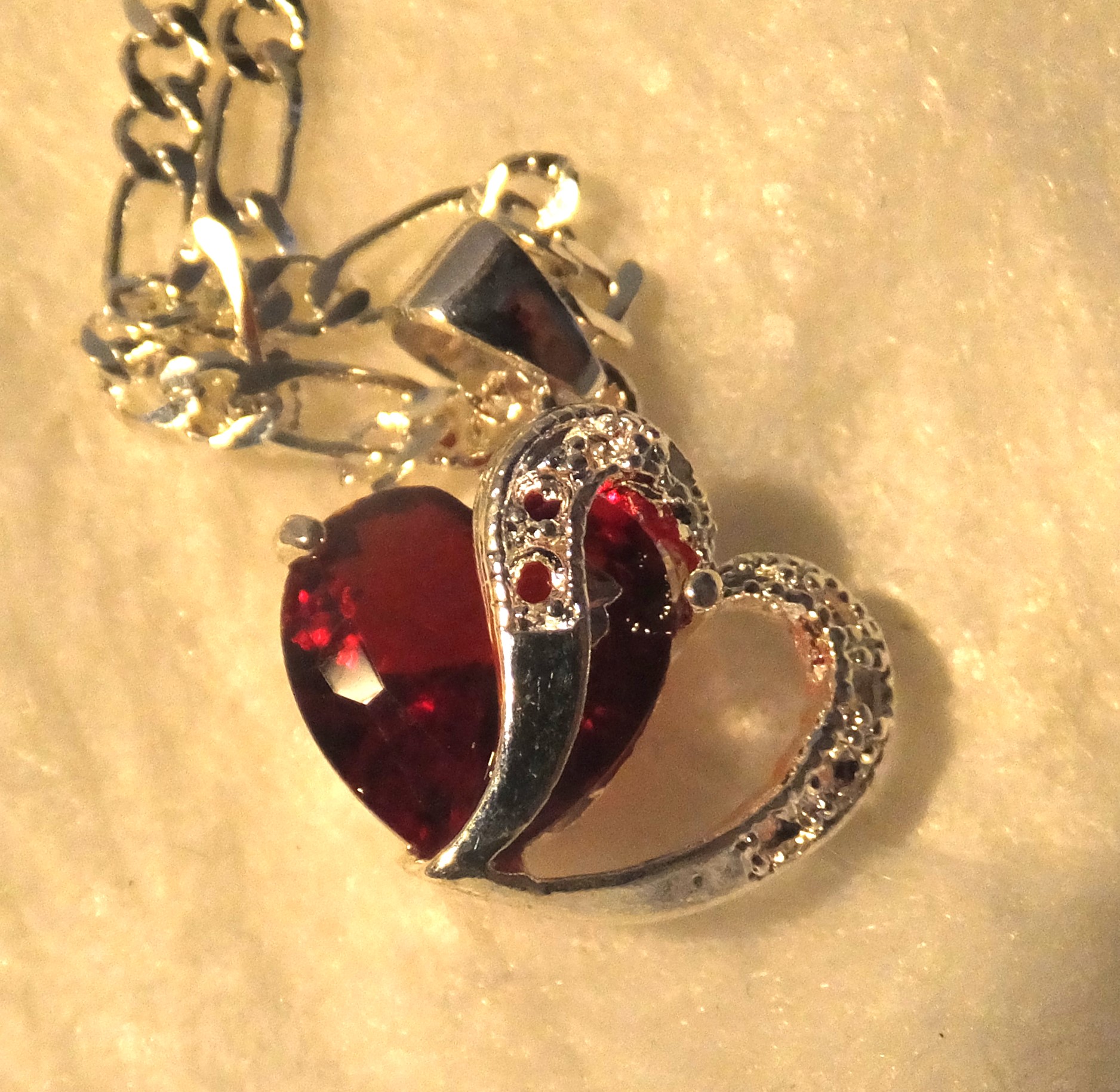 NEW 24" STERLING SILVER NECKLACE WITH RED HEAR