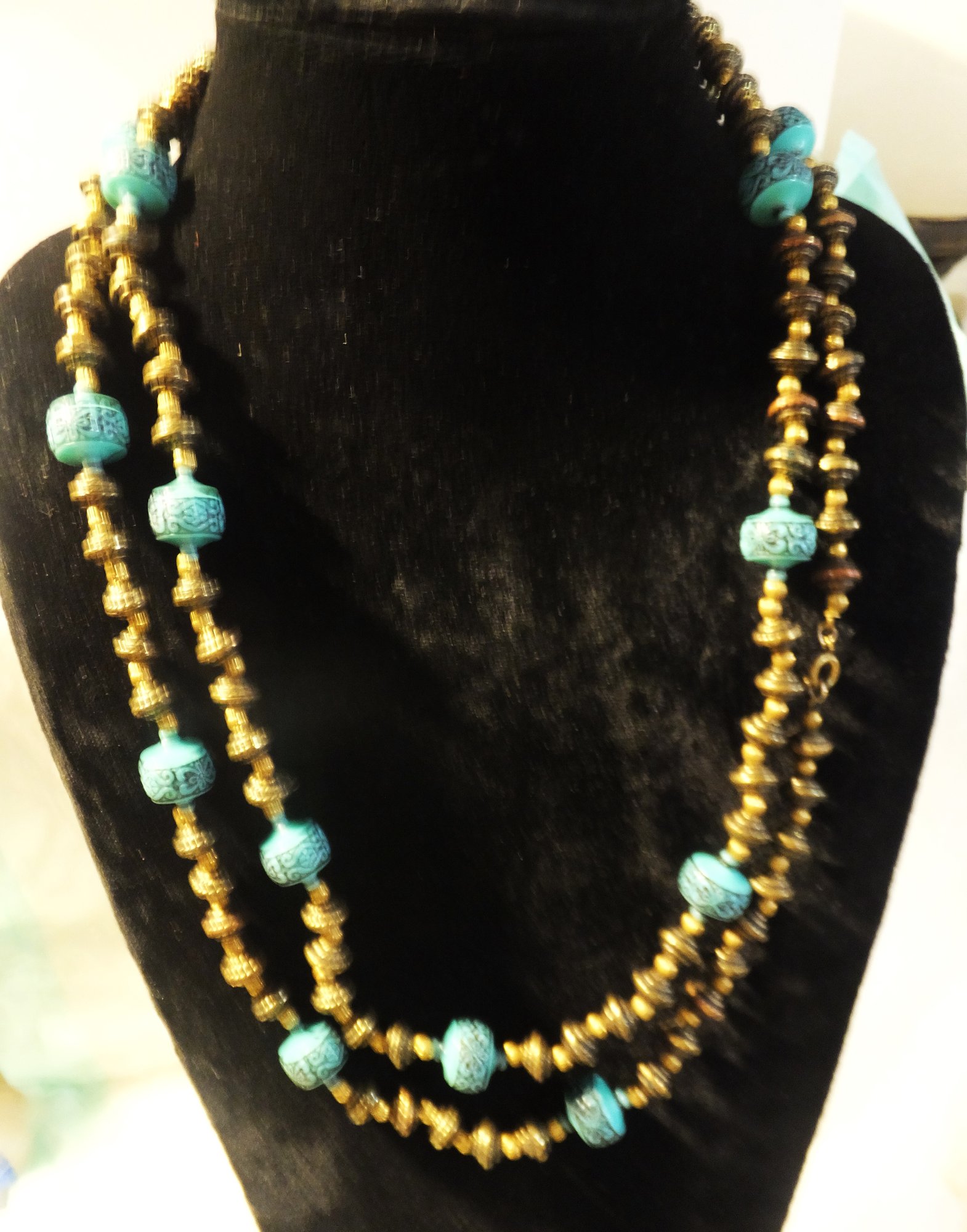 Hand strung 24" necklace. metal in between turquoise color beads.