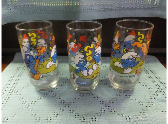 3 Harmony smurf glasses good condition, measures 6" tall