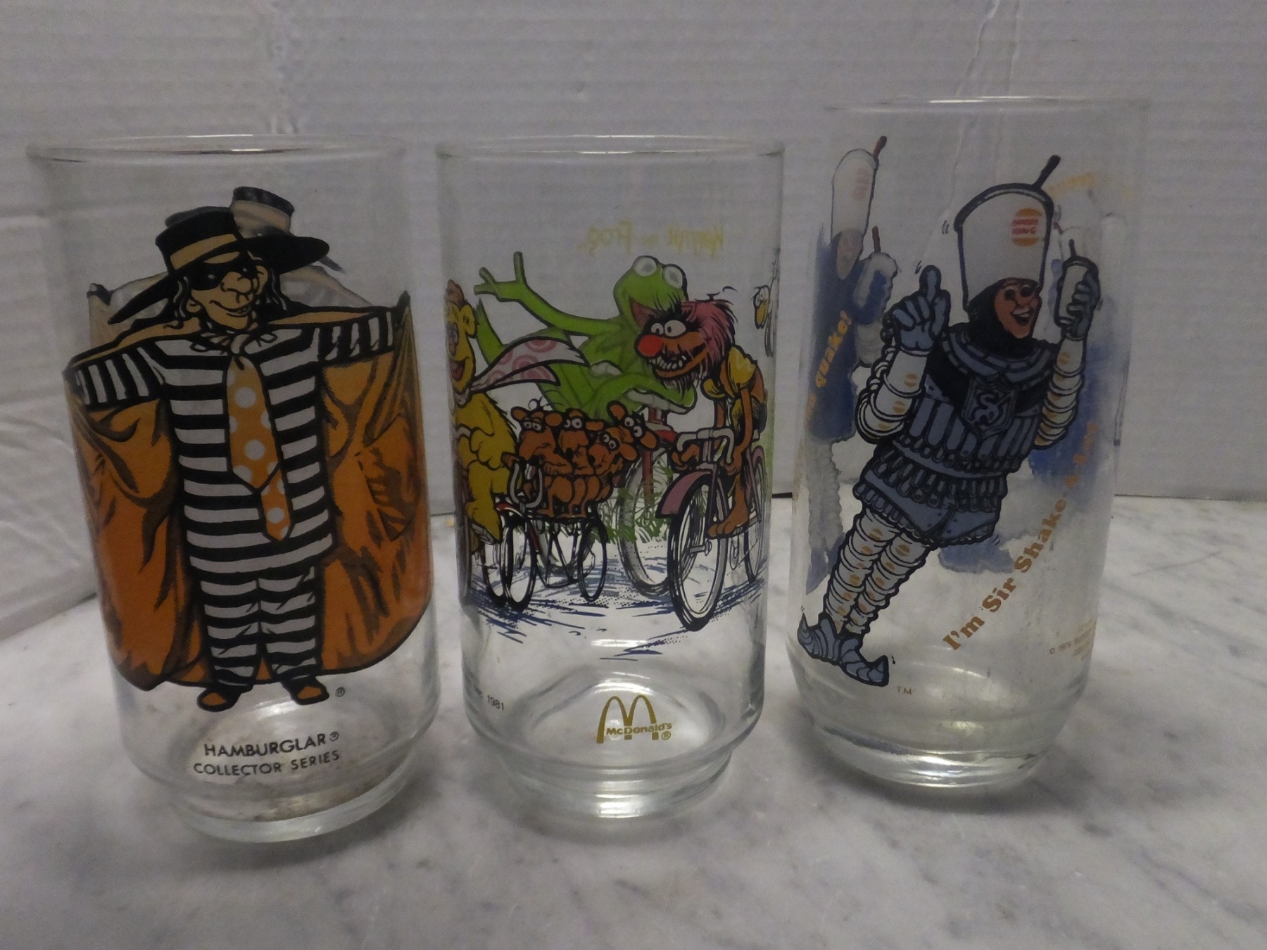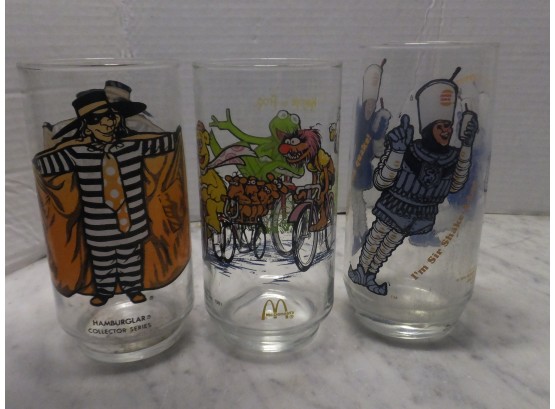 3 MC DONALD'S GLASSES THE MUPPET CAPER, SIR SHAKE A LOT ,HAMBURGLAR.