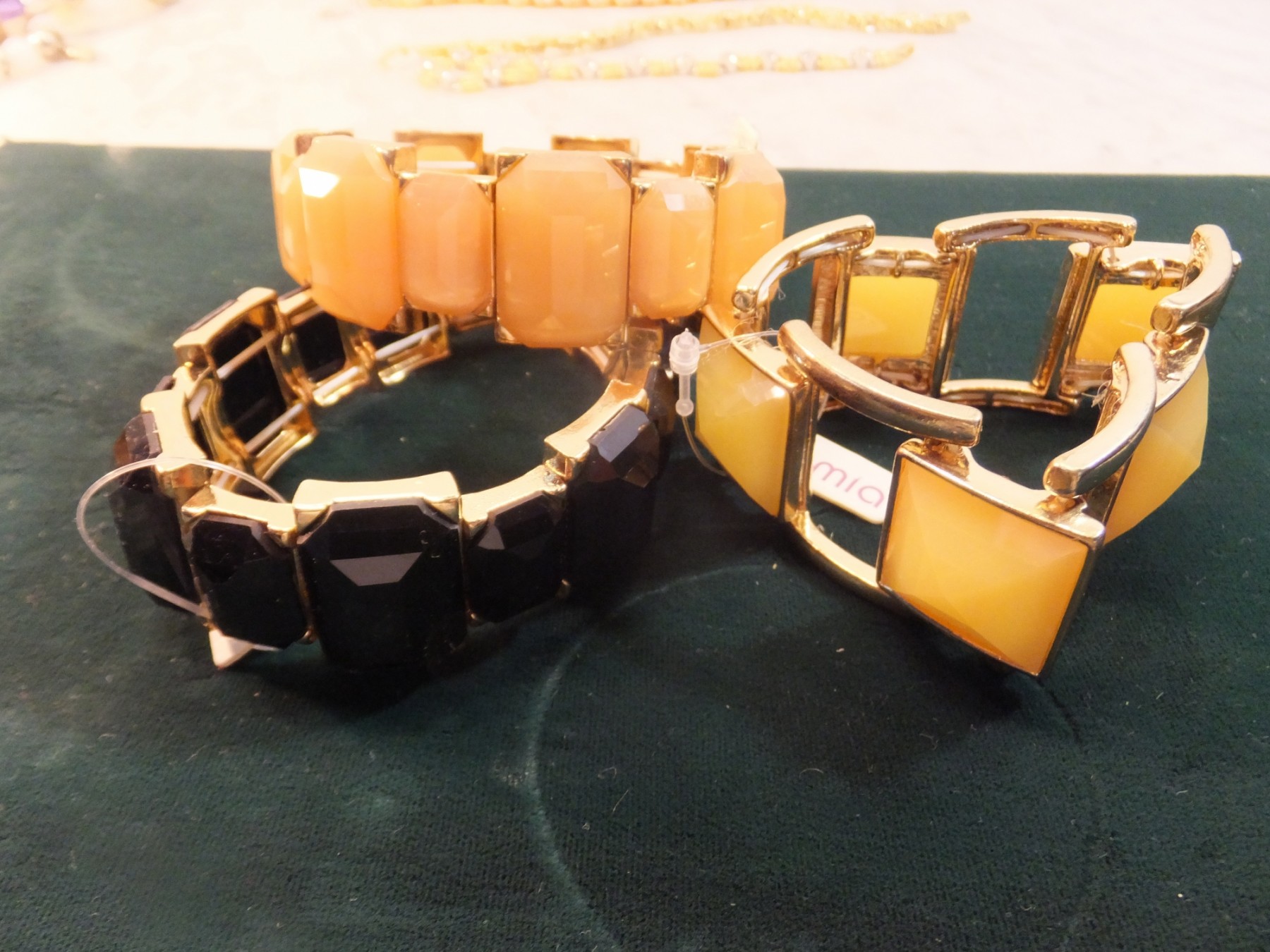 3 stretch bracelets 1 BLACK AND 2 TAN COLOR, NEW