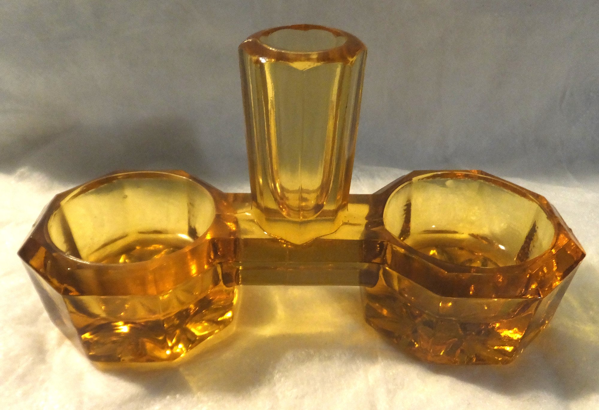 AMBER DEPRESSION GLASS SALT/PEPPER & TOOTHPICK HOLDER