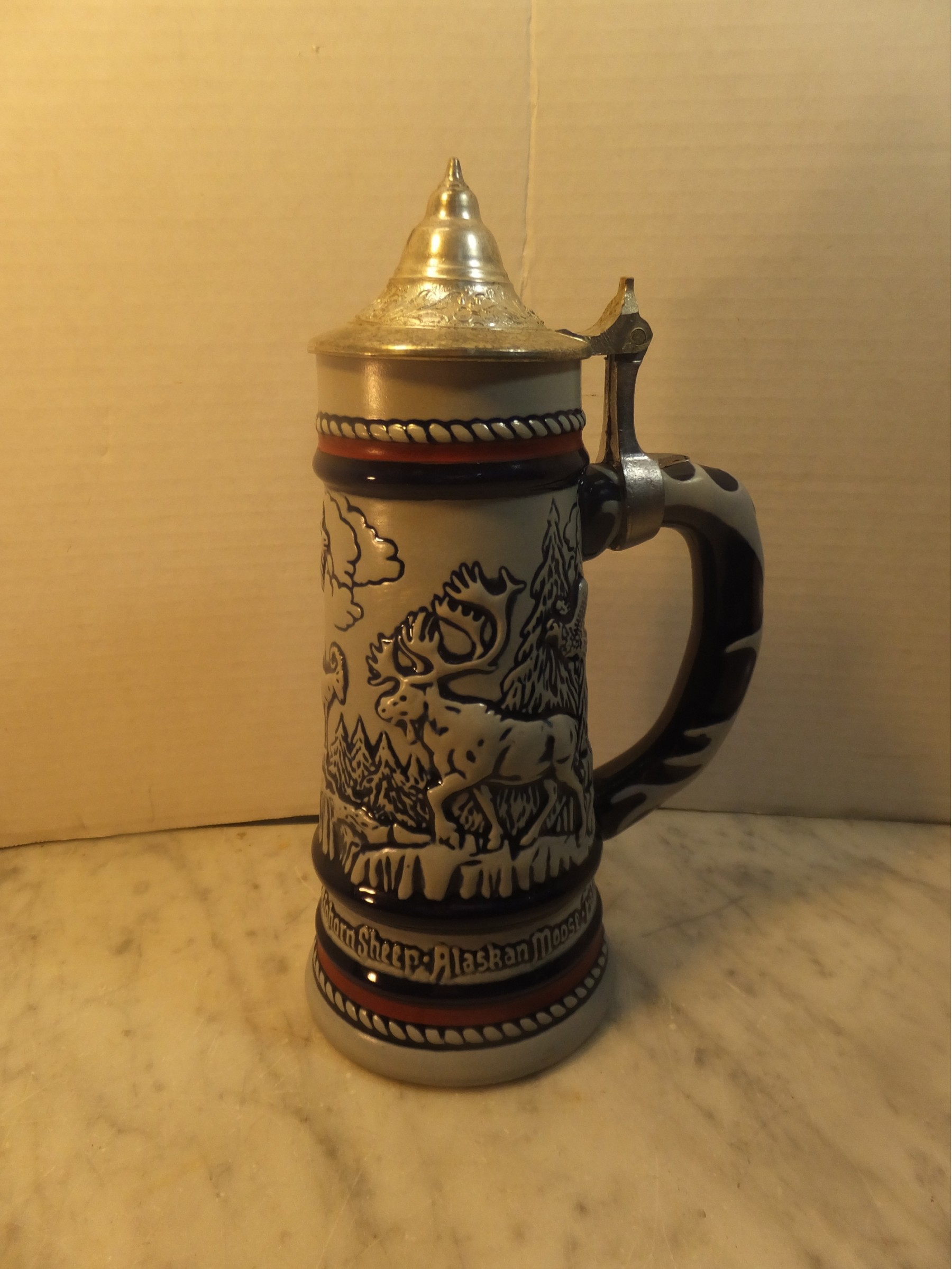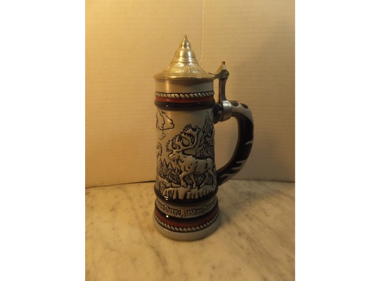 AVON STEIN WITH ANIMALS. FLIP TOP LID MEASURES 10 1/2"