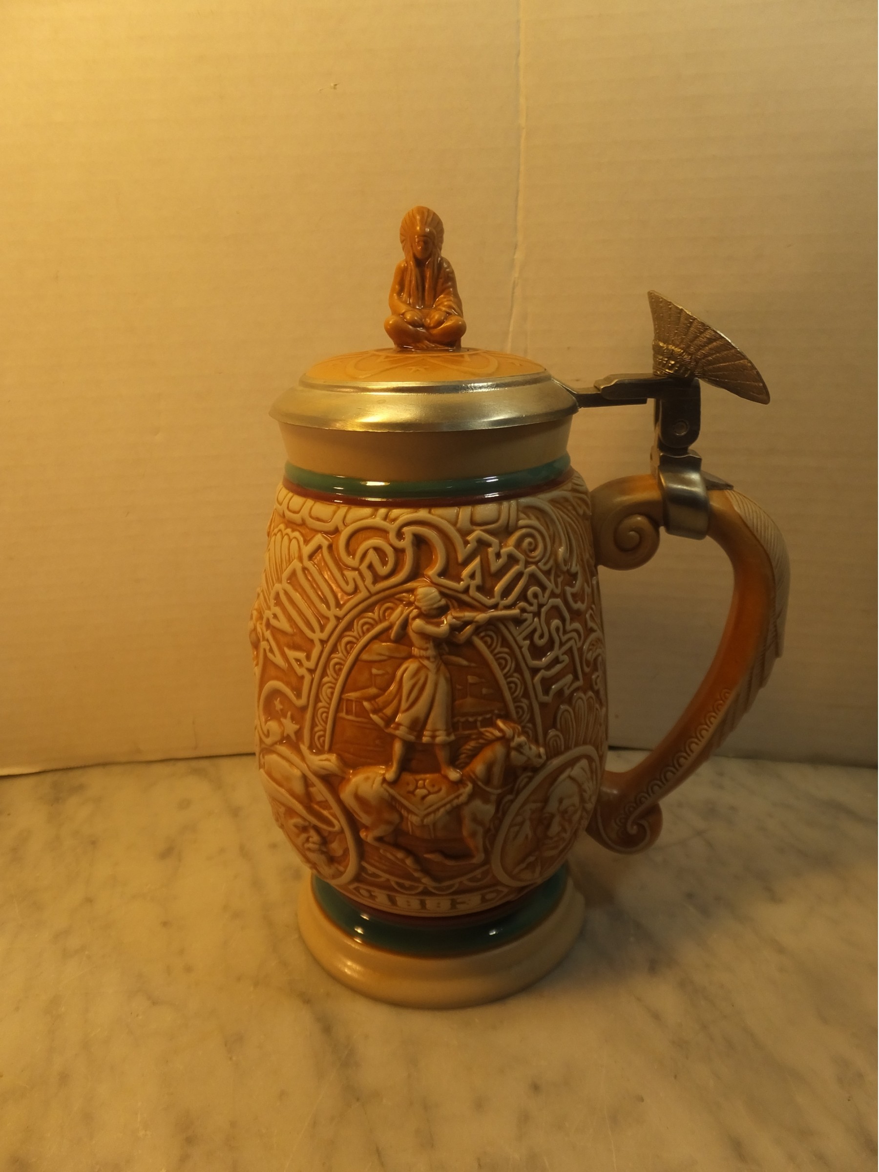 AVON WILD WEST STEIN W/ FLIP TOP LID MEASURES 9" TALL GOOD CONDITION.