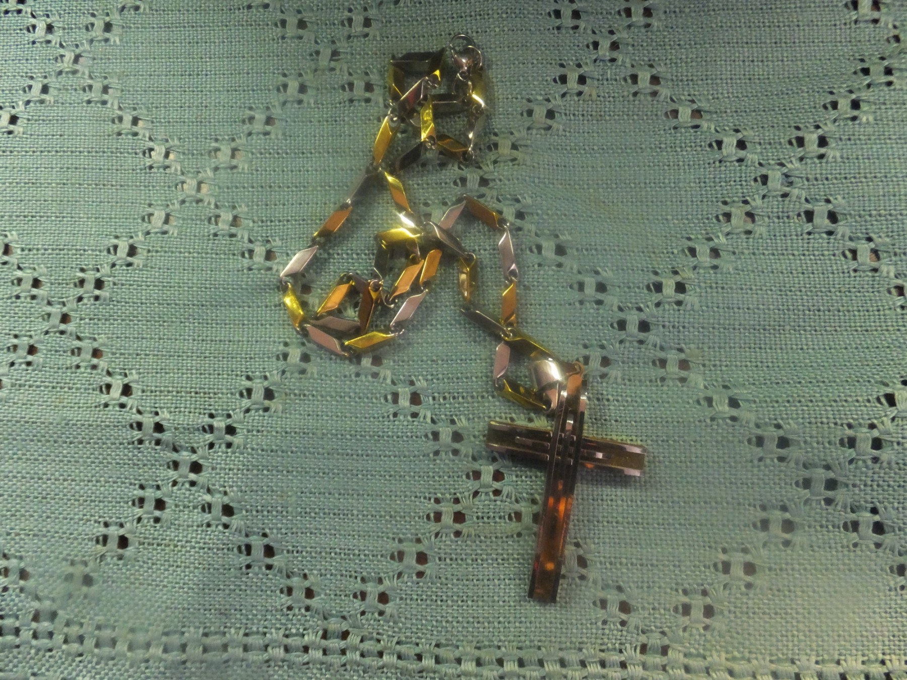 HEAVY STAINLESS STEEL CROSS AND 24" CHAIN. 2 TONE GOLD/SILVER