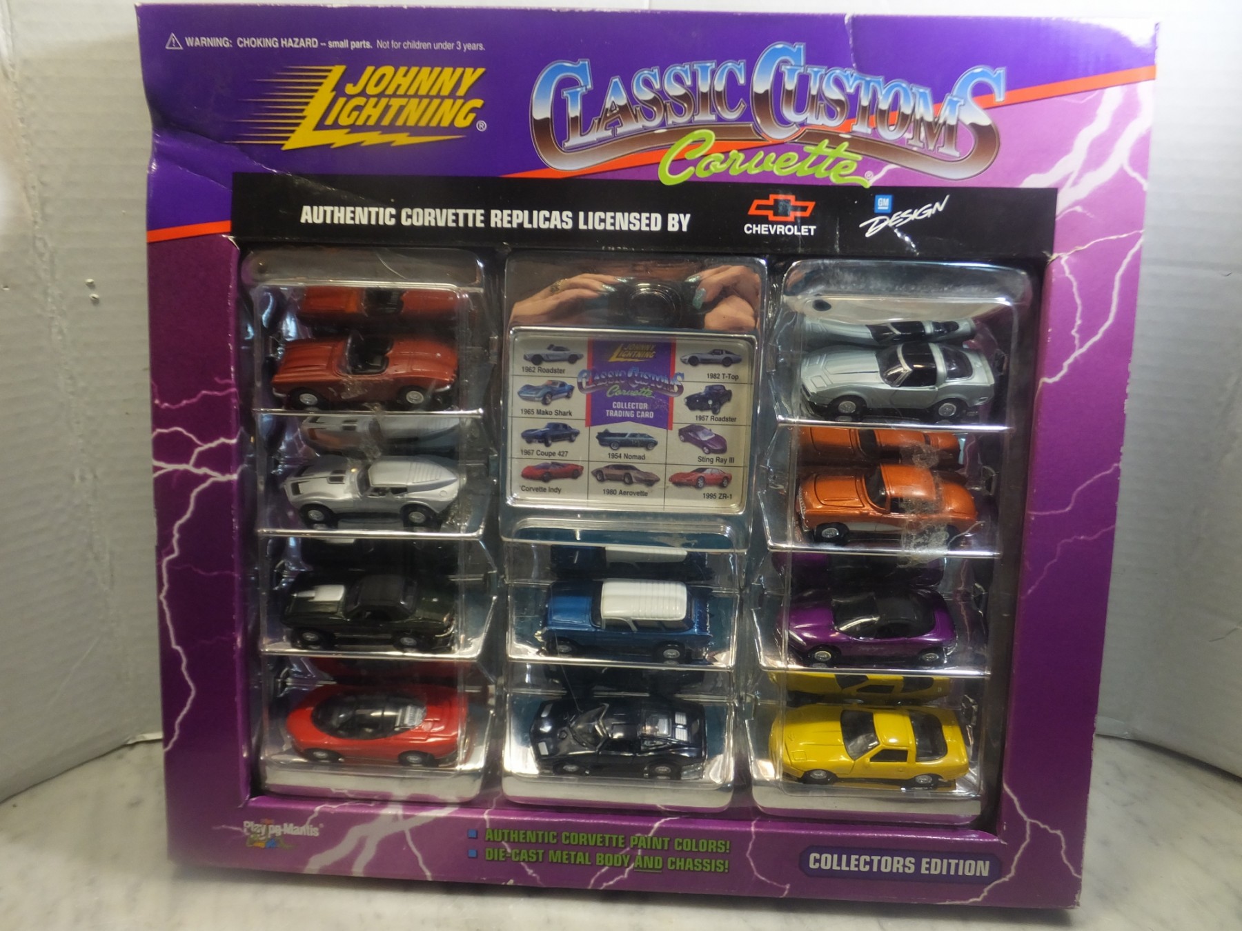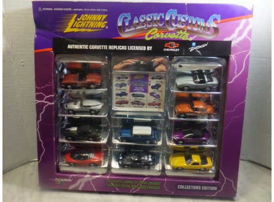 JOHNNY LIGHTING CLASSIC CUSTOMS CORVETTE IN BOX. DIE CAST METAL BODY AND CHASSIS.