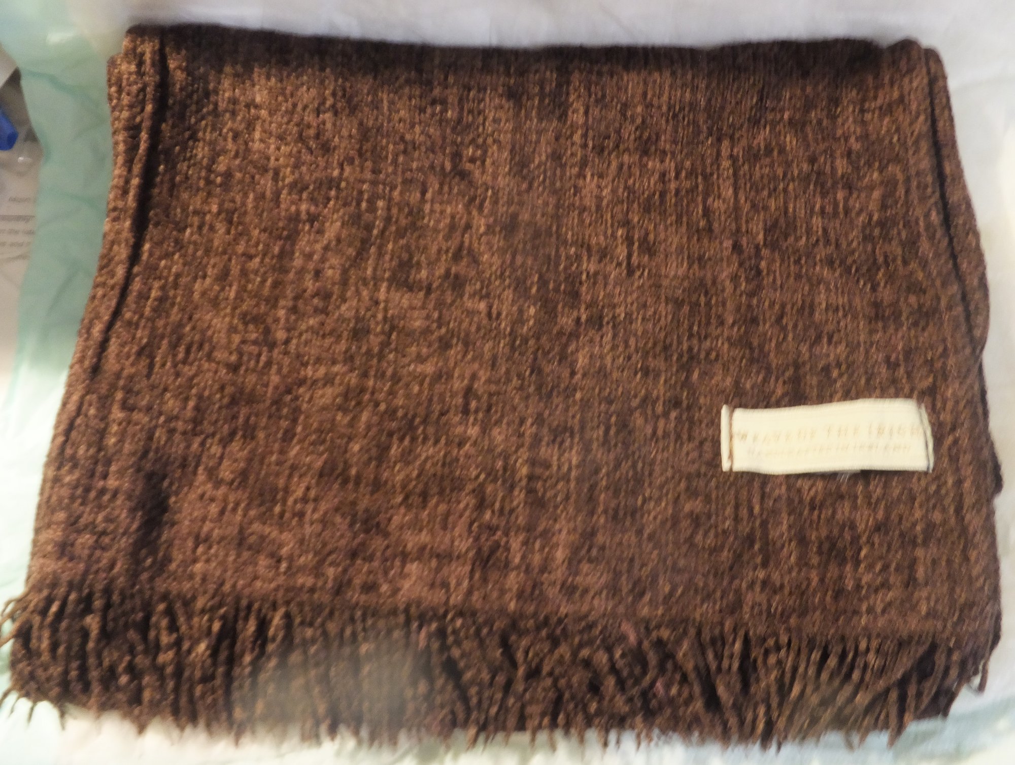BROWN ACRYLIC SCARF MADE IN IRELAND, MEASURES 64" LONG.