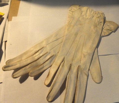 LADIES VINTAGE OFF WHITE LEATHER GLOVES. SIZE SMALL