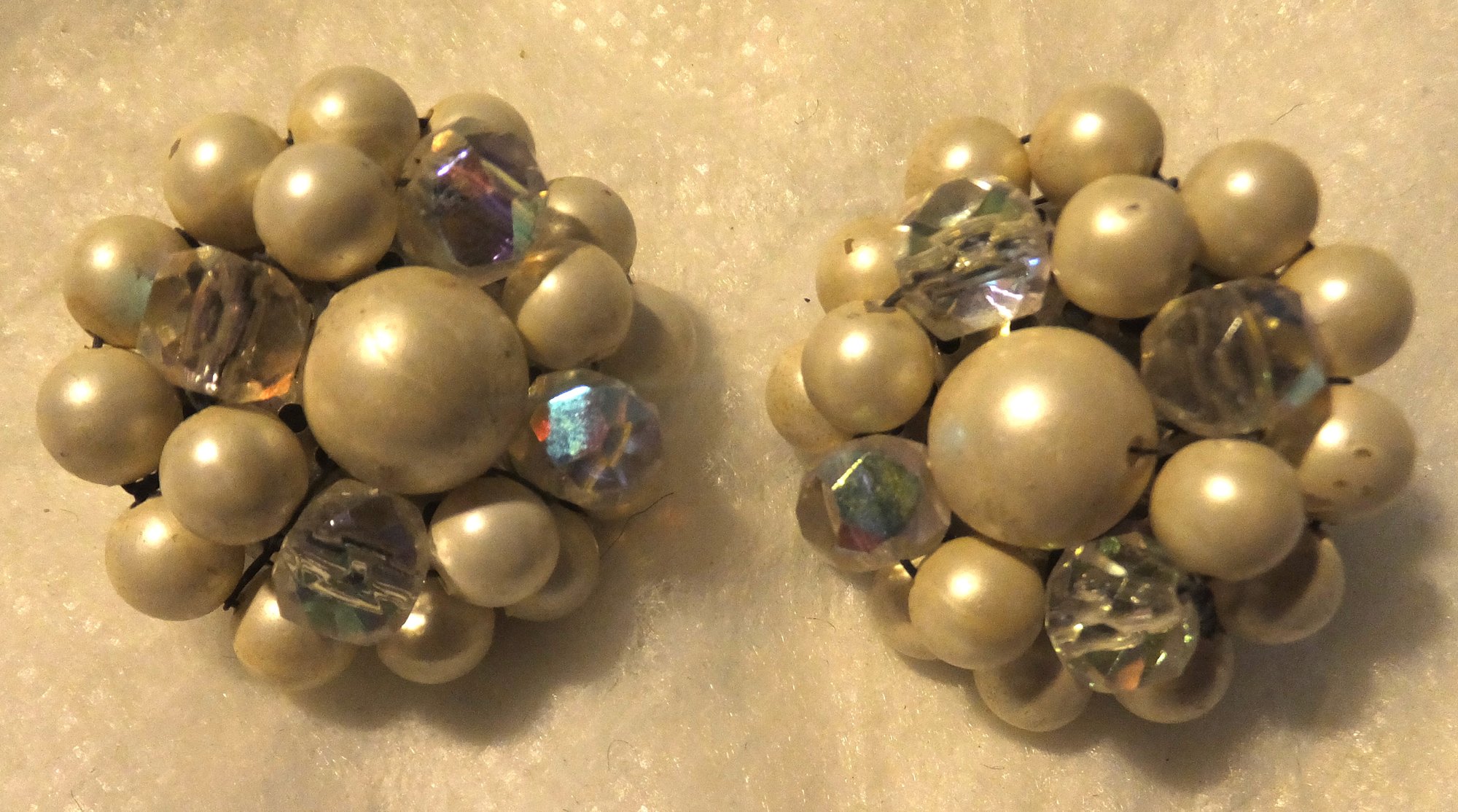 VINTAGE PEARL & CRYSTAL CLIP ON EARRINGS