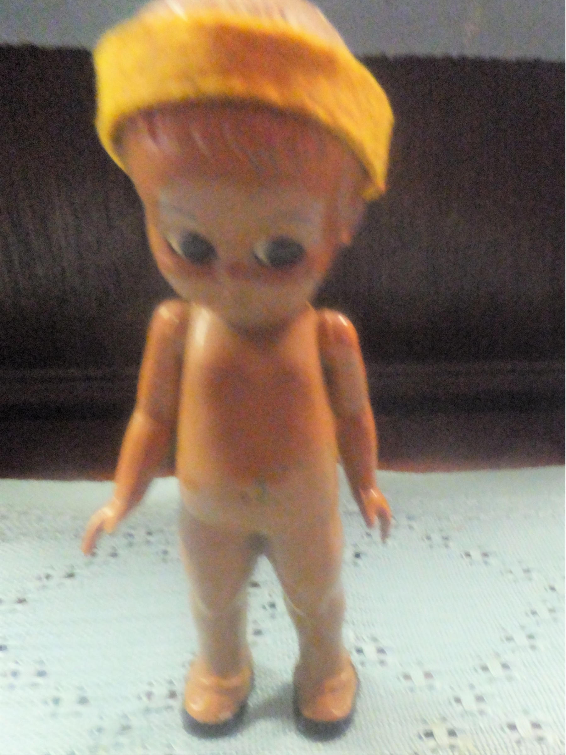 vintage plastic molded doll. eyes open & close measures 5 1/2"