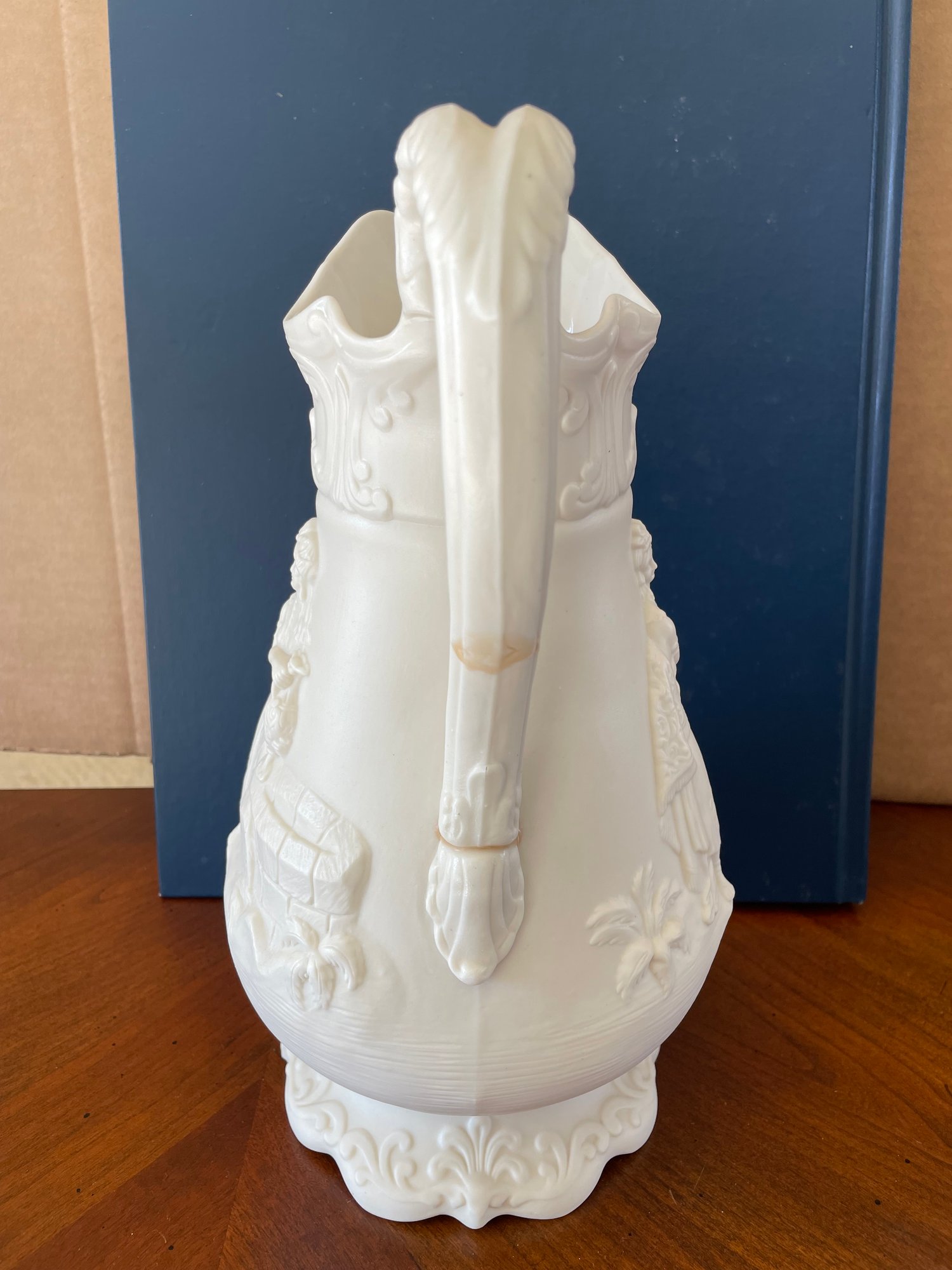Transport yourself to the grandeur of 19th-century Orientalist design with this stunning relief-moulded jug by Samuel Alcock & Co. Featuring an elegant, high-relief depiction of an Arabic-inspired figure, framed by neoclassical flourishes and a sculpted handle, this jug is a masterpiece of Victorian artistry. With its parian-like finish and museum-worthy detail, this rare piece is a must-have for collectors of Staffordshire ceramics, antique Orientalist decor, and fine English pottery.