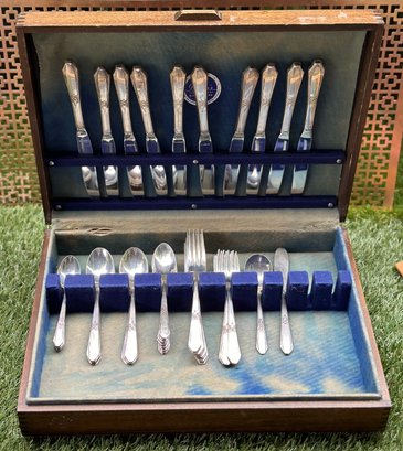 Please note, silver platter not included in this Lot, wooden caddy included.