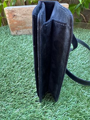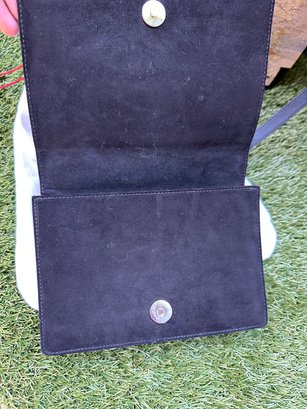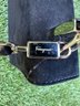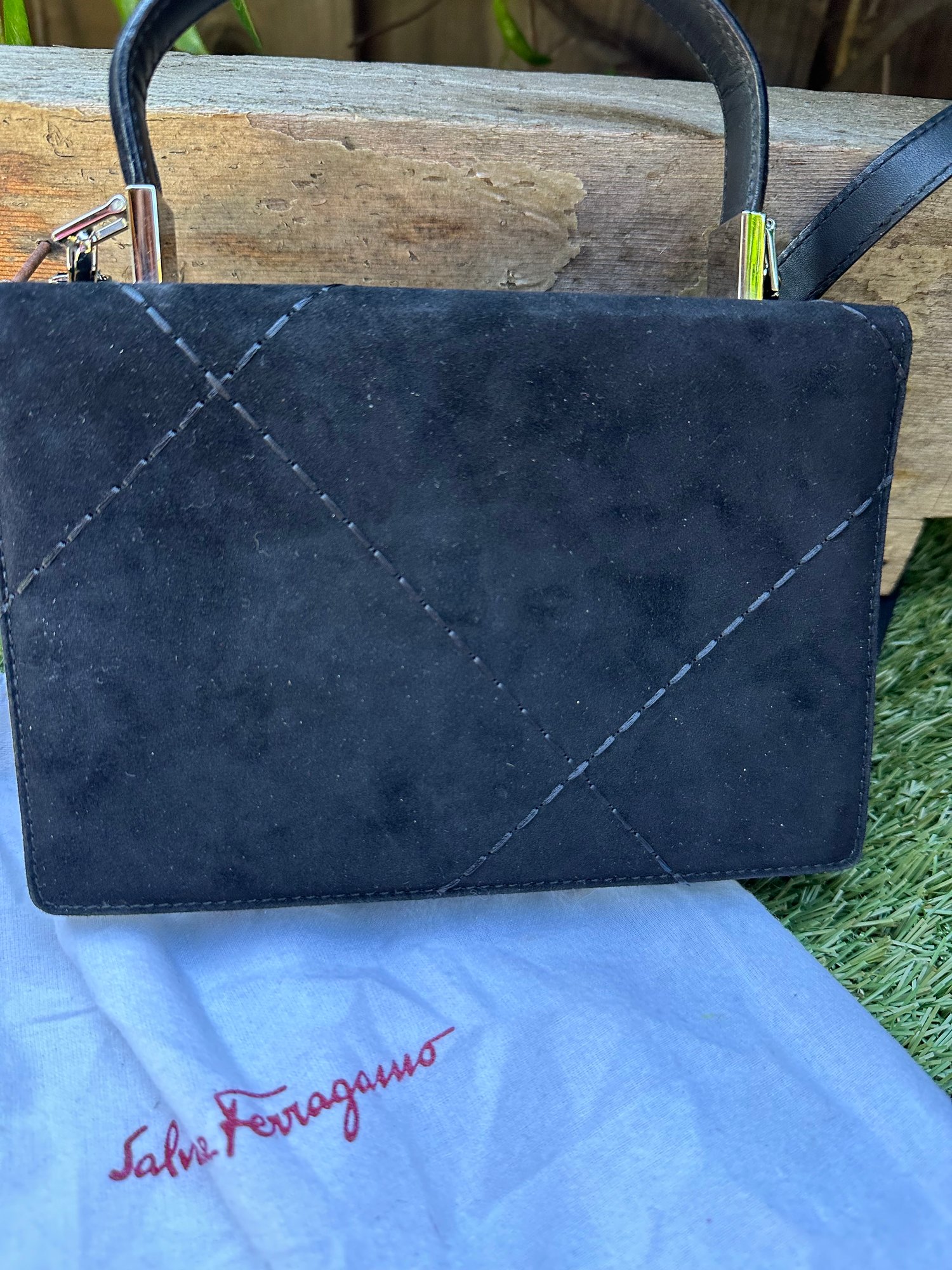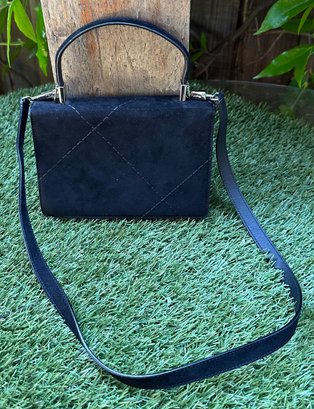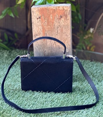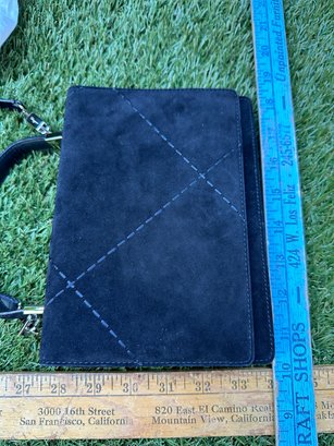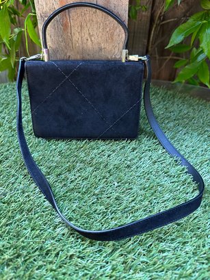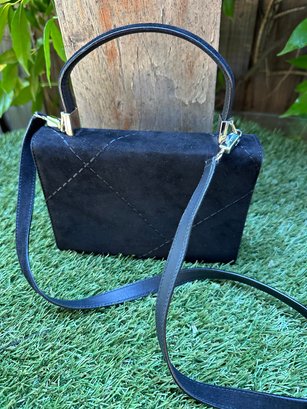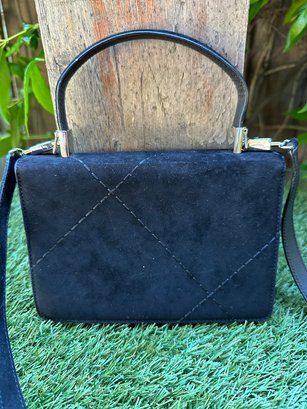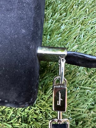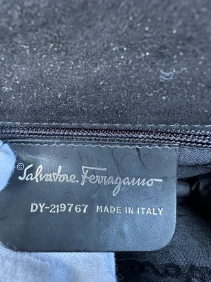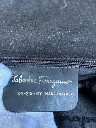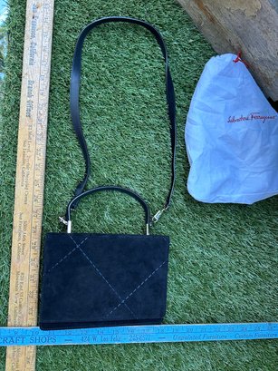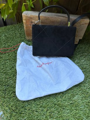 Authentic Ferragamo Black Stitch Suede Handbag with Strap