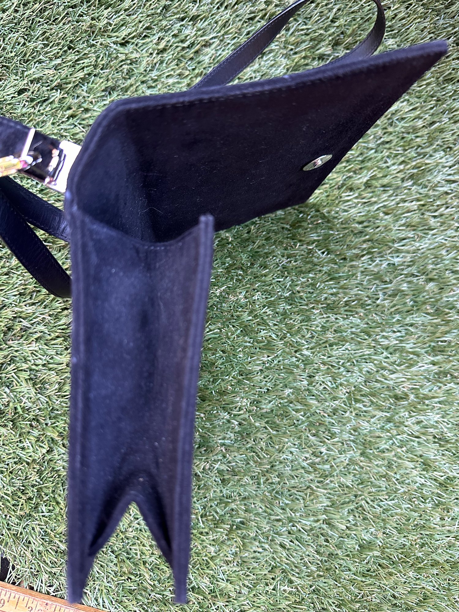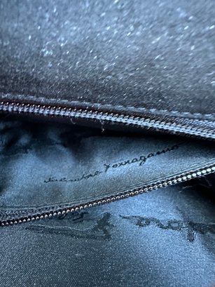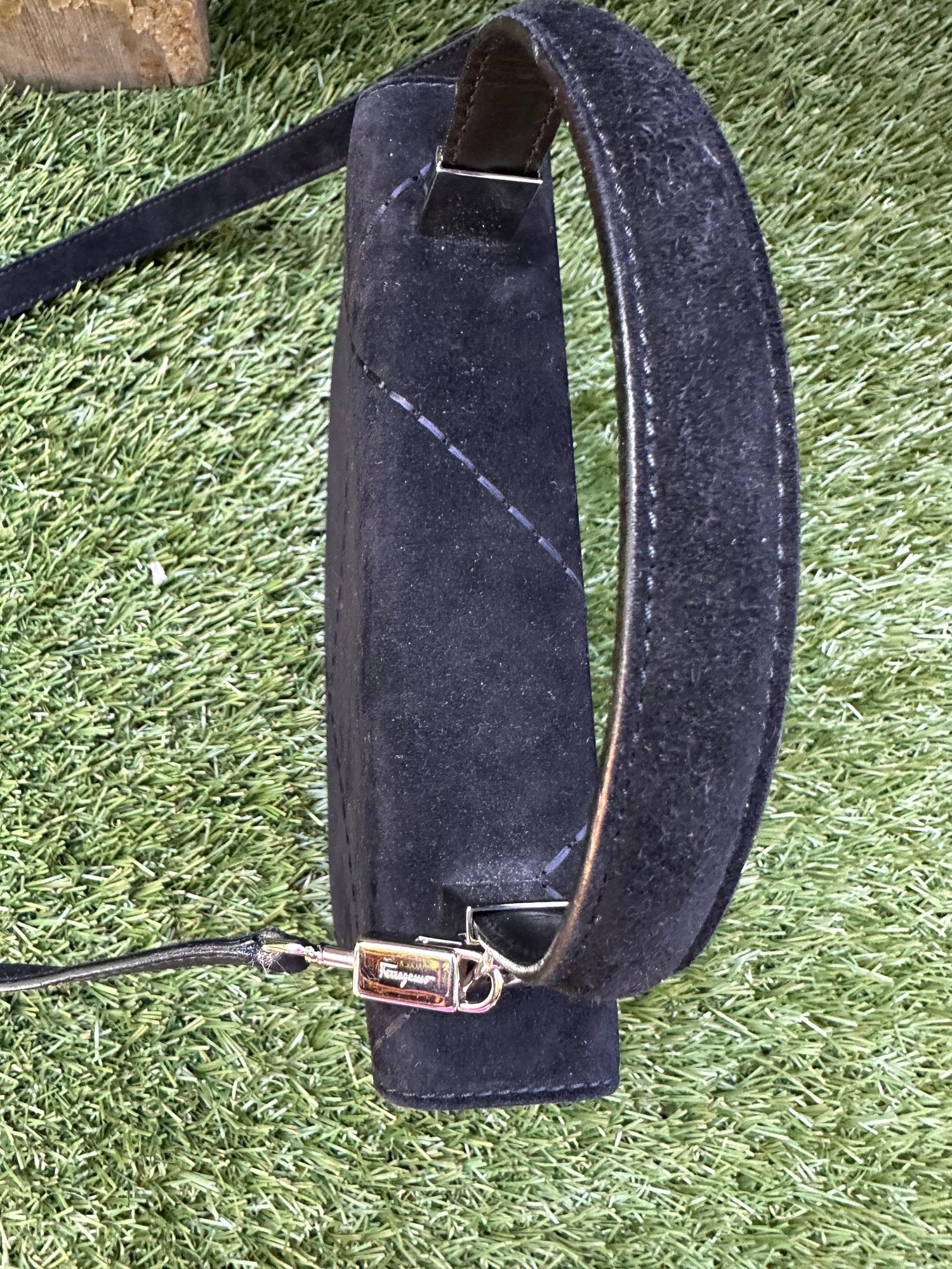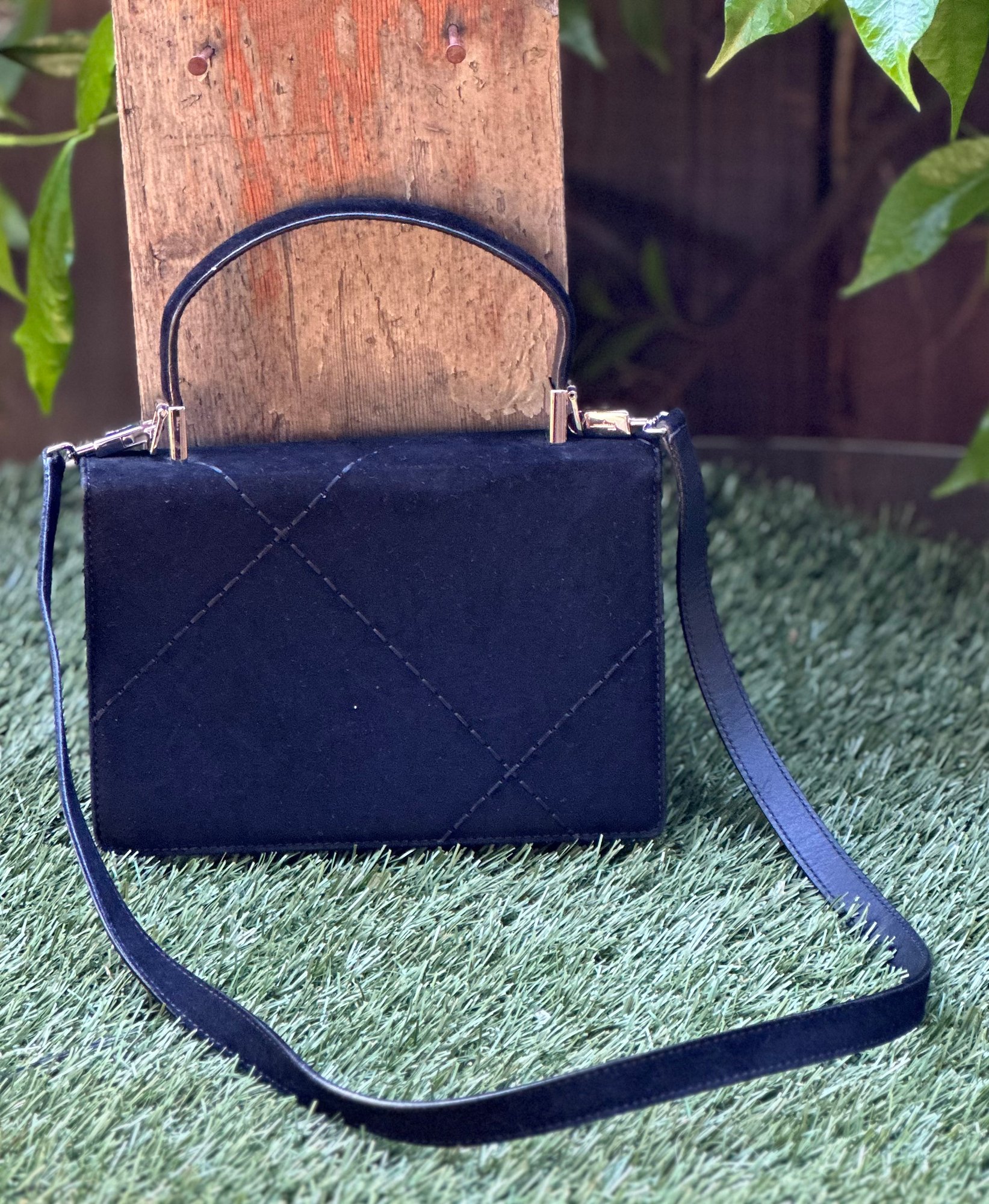 Authentic Ferragamo Black Stitch Suede Handbag with Strap