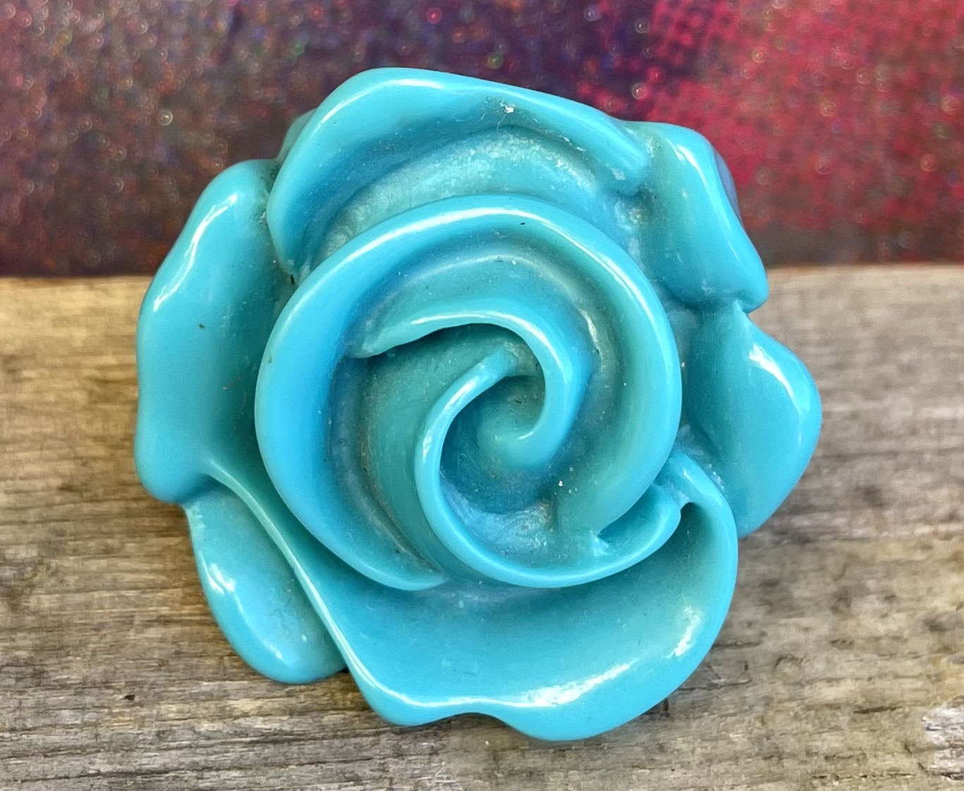 (B44) Rose All Rave Chunky Turquoise Resin Rose Ring