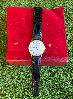 Elegant and timeless, this Baume & Mercier Classima Ref. 15205 showcases Swiss craftsmanship with its 18k yellow gold case, classic white dial adorned with Roman numerals, and a reliable quartz movement. The watch is in excellent condition, reflecting its well-maintained history.