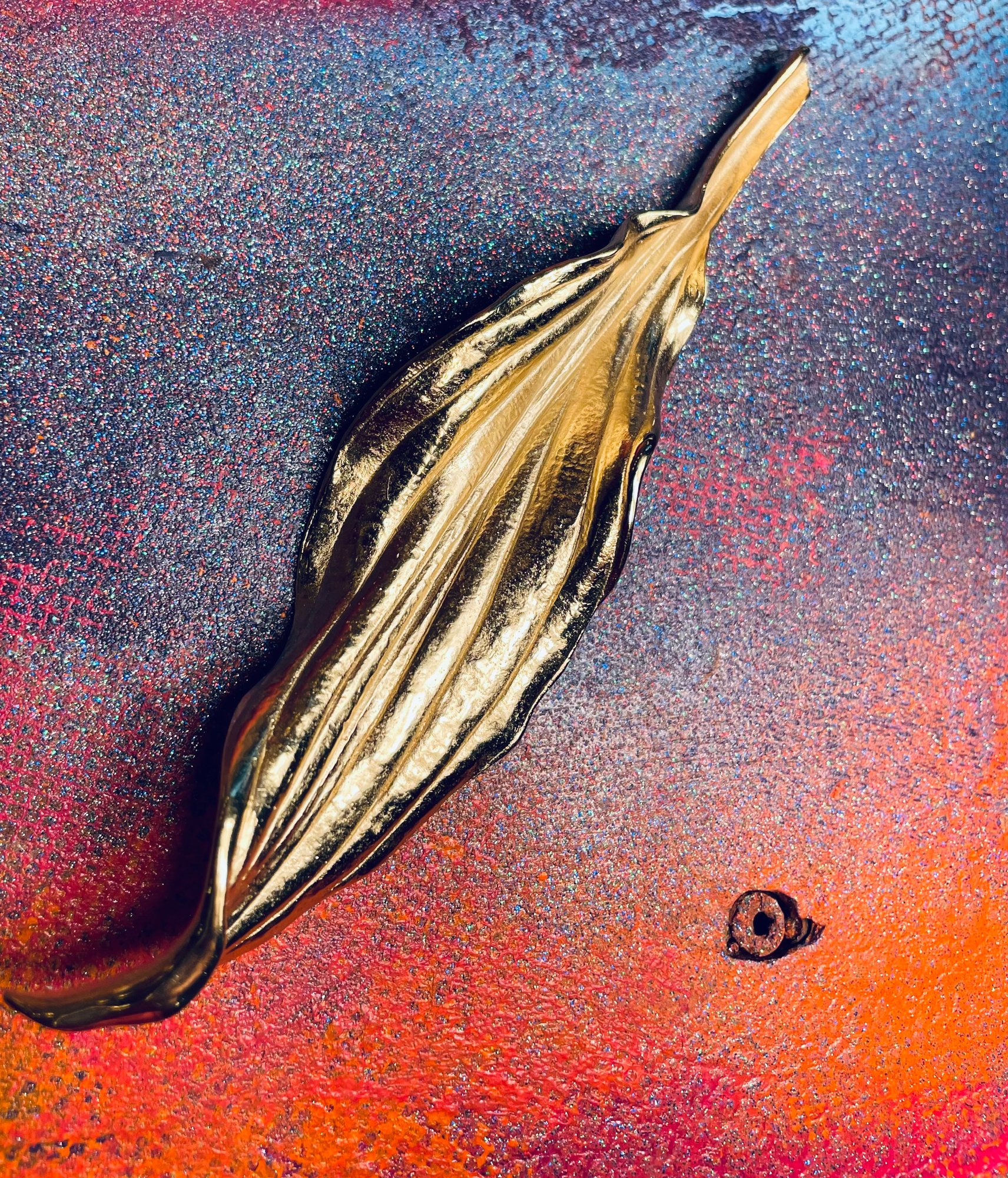 (J20) Vintage TRIFARI Gold Tone Sculpted Leaf Brooch