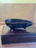 MCM Footed Dark Brown And Black Speckled Trinket Dish