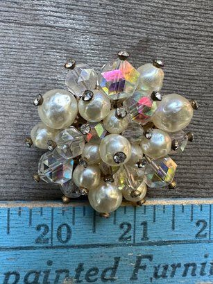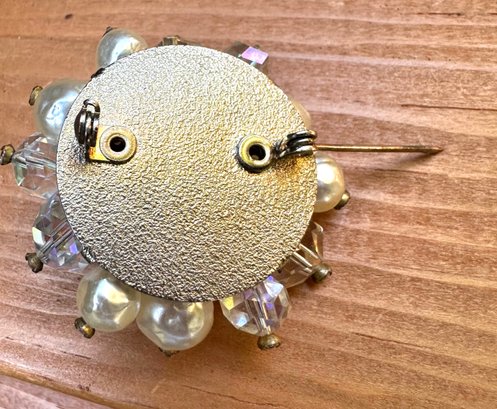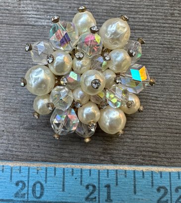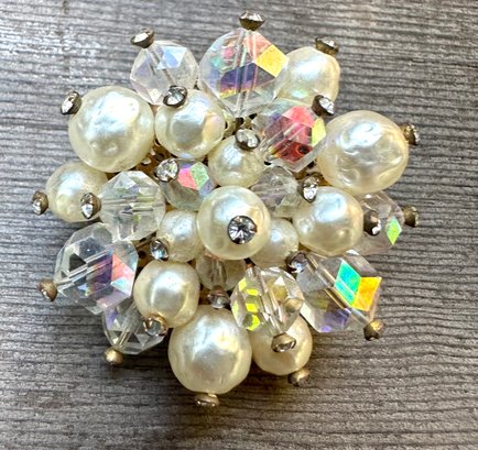 Vintage Crystal Rhinestone Beaded Cluster Brooch Pin