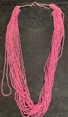 Vintage Hot Pink Multi-Strand Seed Bead Necklace