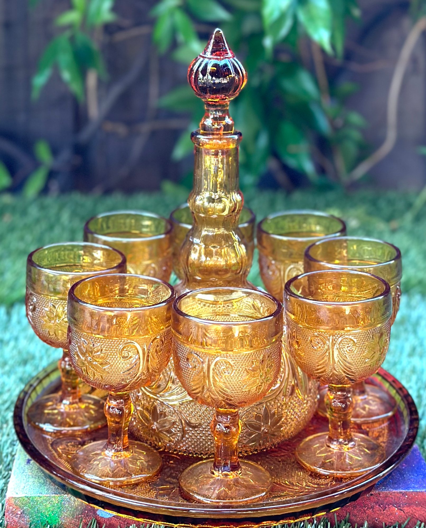 Vintage Indiana Glass Amber Tiara Decanter Set