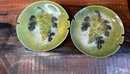 Vintage Mid Century Signed Sascha Brastoff Green Grape Enamel Ashtrays S/2