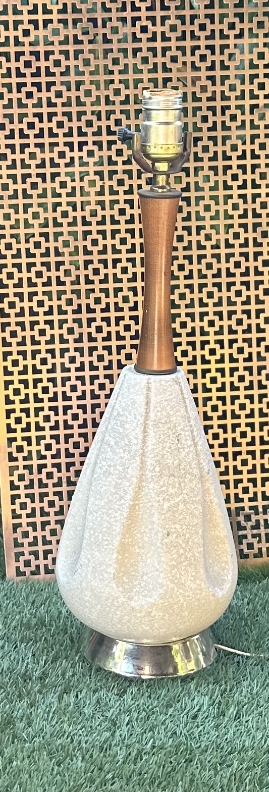Vintage Mod Mid-Century Curvy Speckled Ceramic Wood Table Lamp