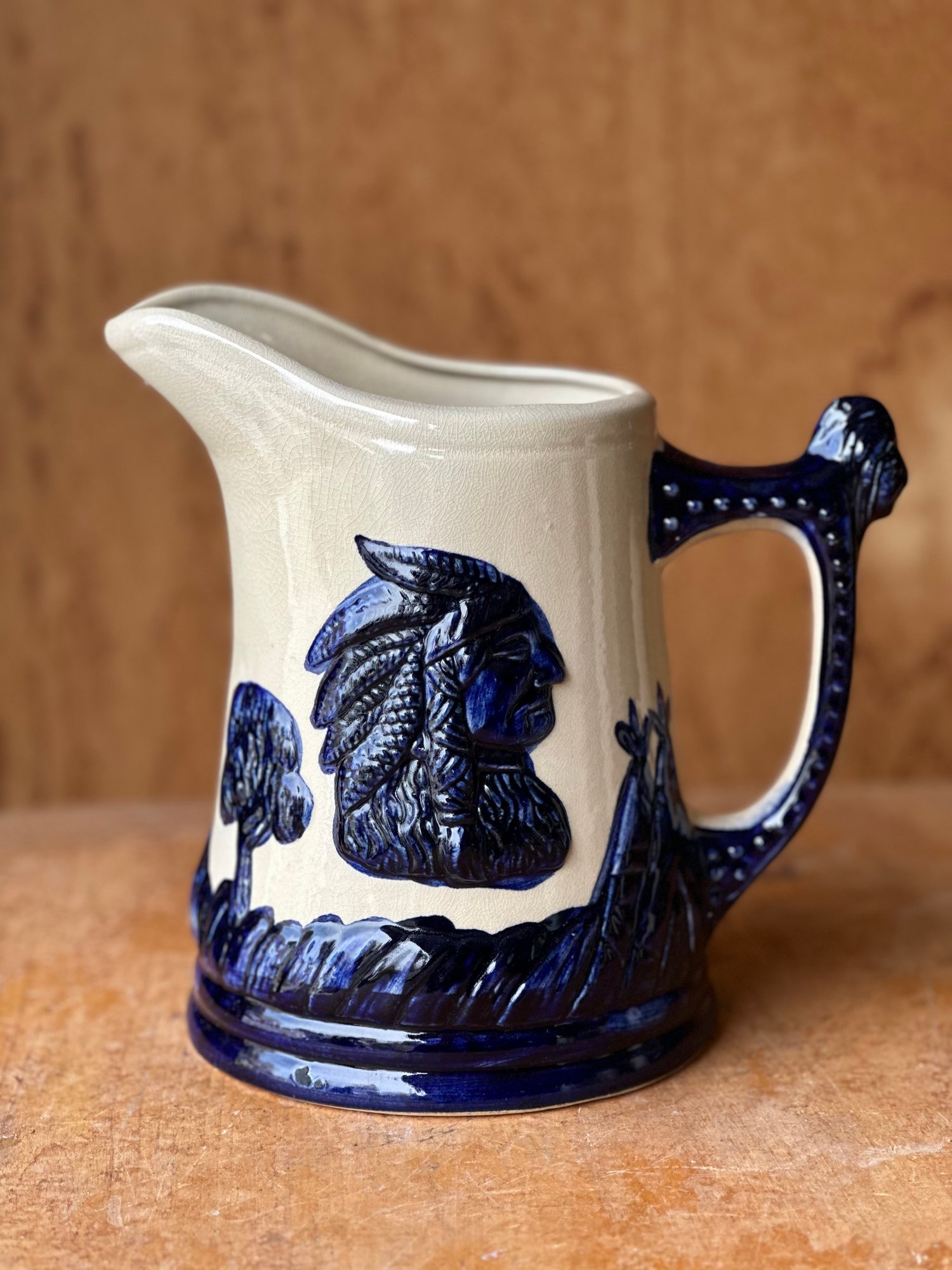 Vintage Ole Sleep Eyes WEIR Pottery Company Pitcher