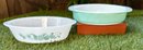 Vintage PYREX AND GLAS-BAKE Casserole Dish And Aqua Milk Glass Fruit Bowls