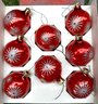 Vintage Red And Silver Starburst Christmas Ornaments S/8
