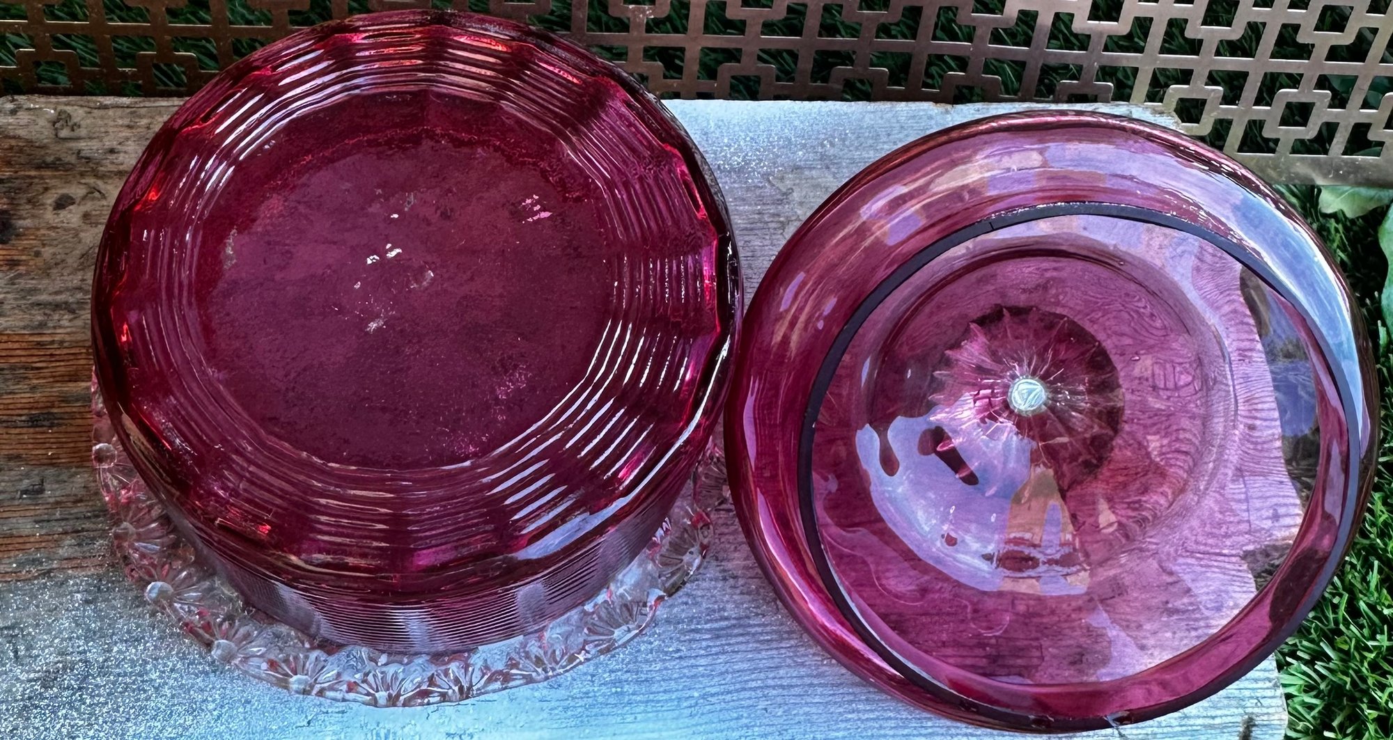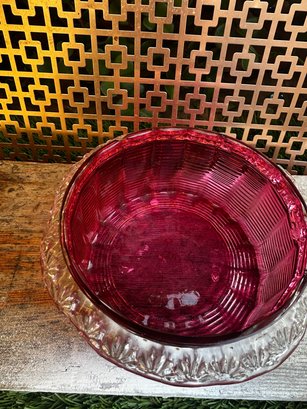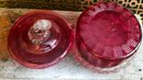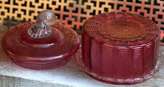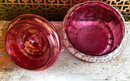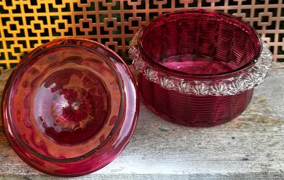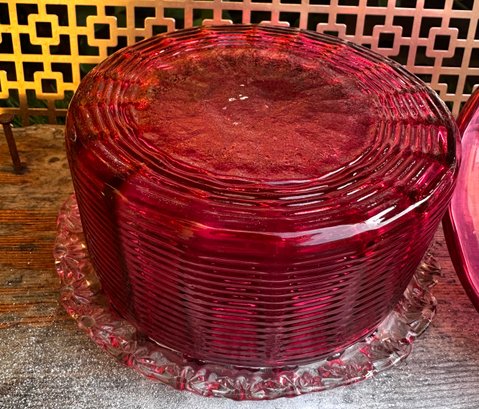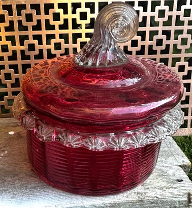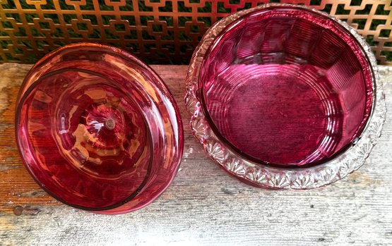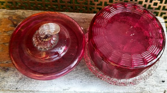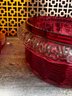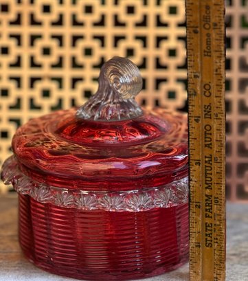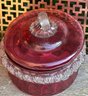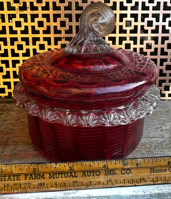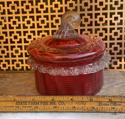 Vintage Ruby Red Pressed Glass Candy Dish With Lid Depression Era Style