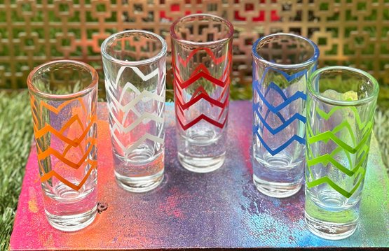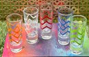 Vintage Signed CRISA 4" Chevron Striped Shot Glasses S/5