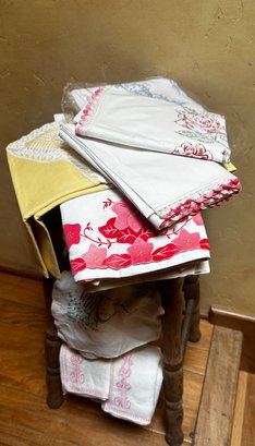 Includes 4 vintage pillowcase sets (some partially embroidered, most unused)