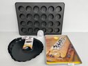 Comes with (1) Non-stick cupcake pan, (2) Non-stick splatter guards, (1) jelly roll pan, and (1) timer.