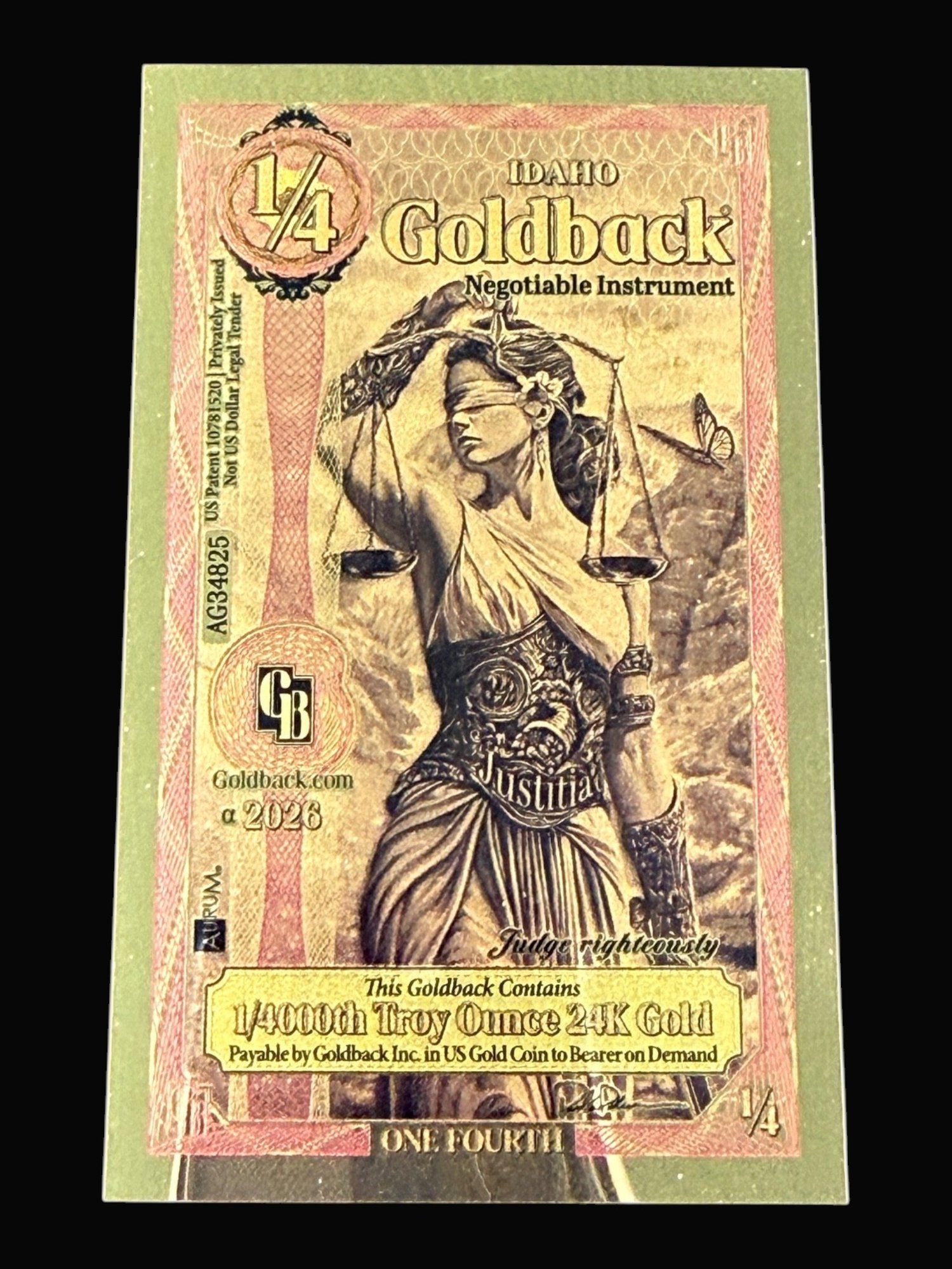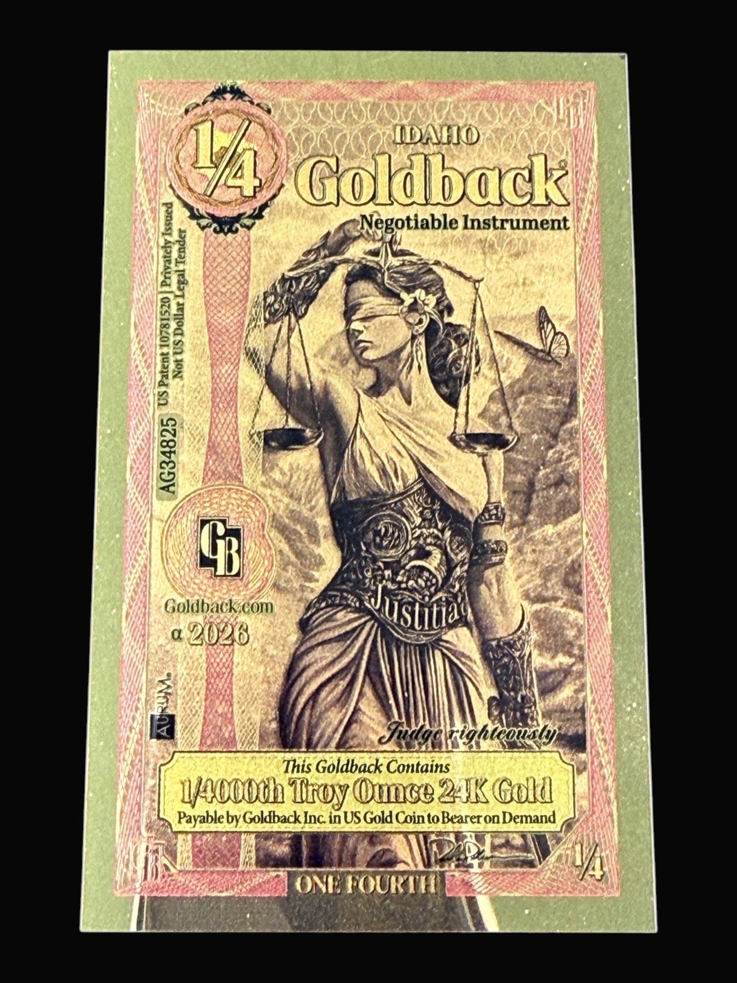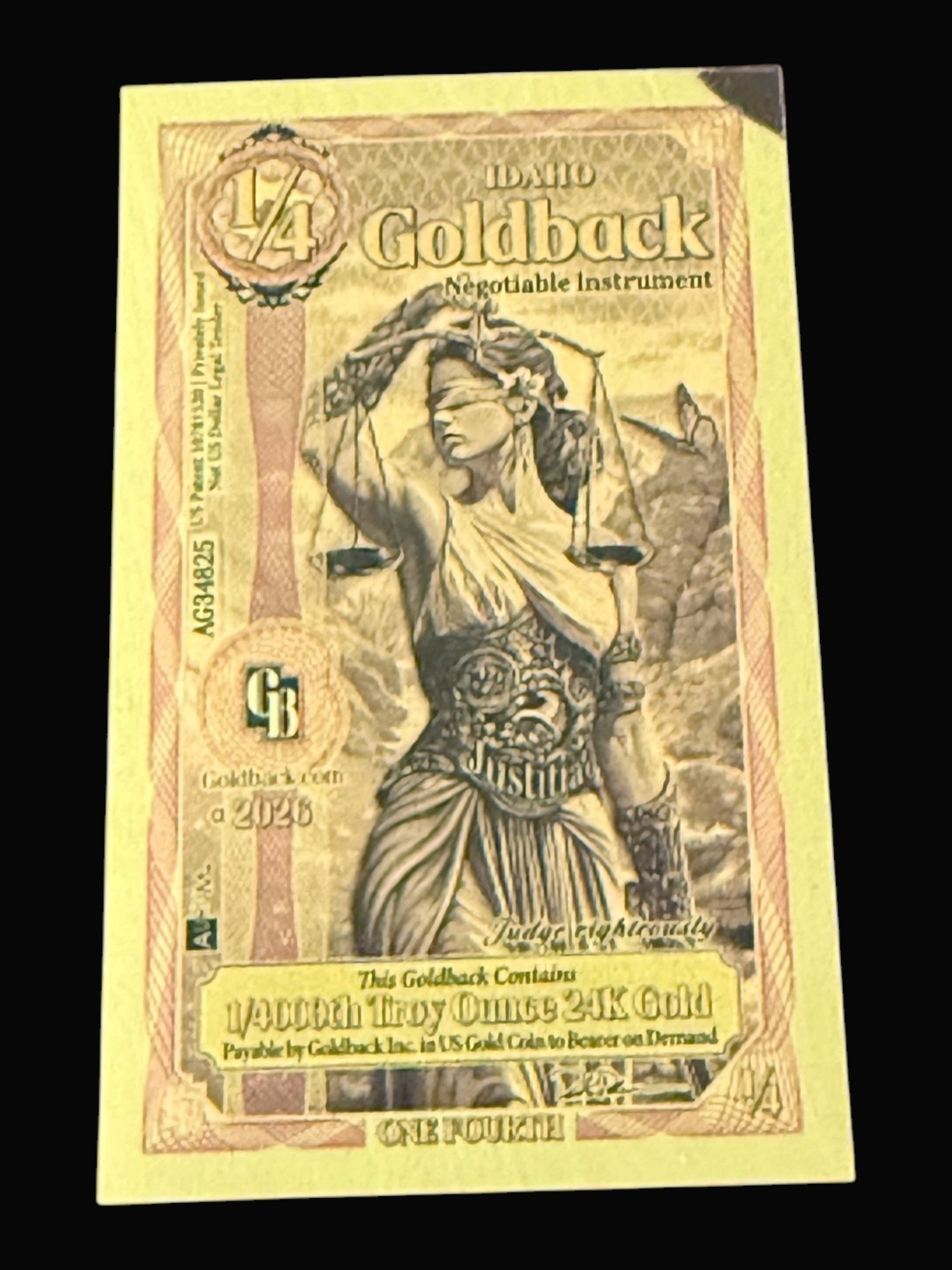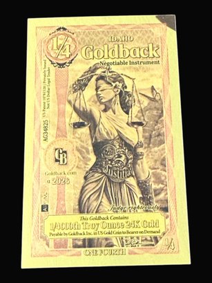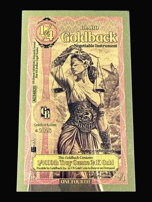 1/4 Idaho GoldBack 1/4000th Troy Ounce 24K Gold