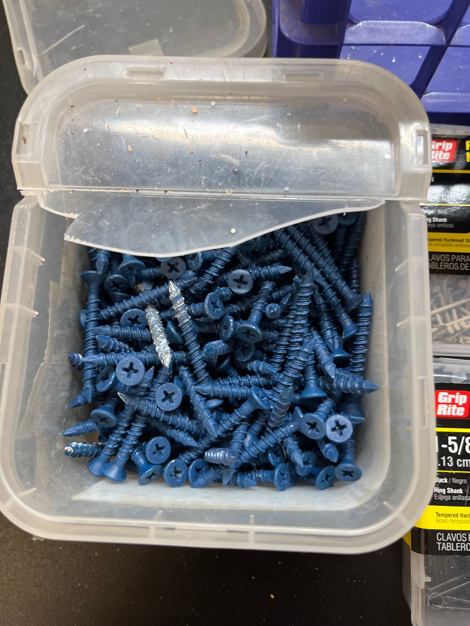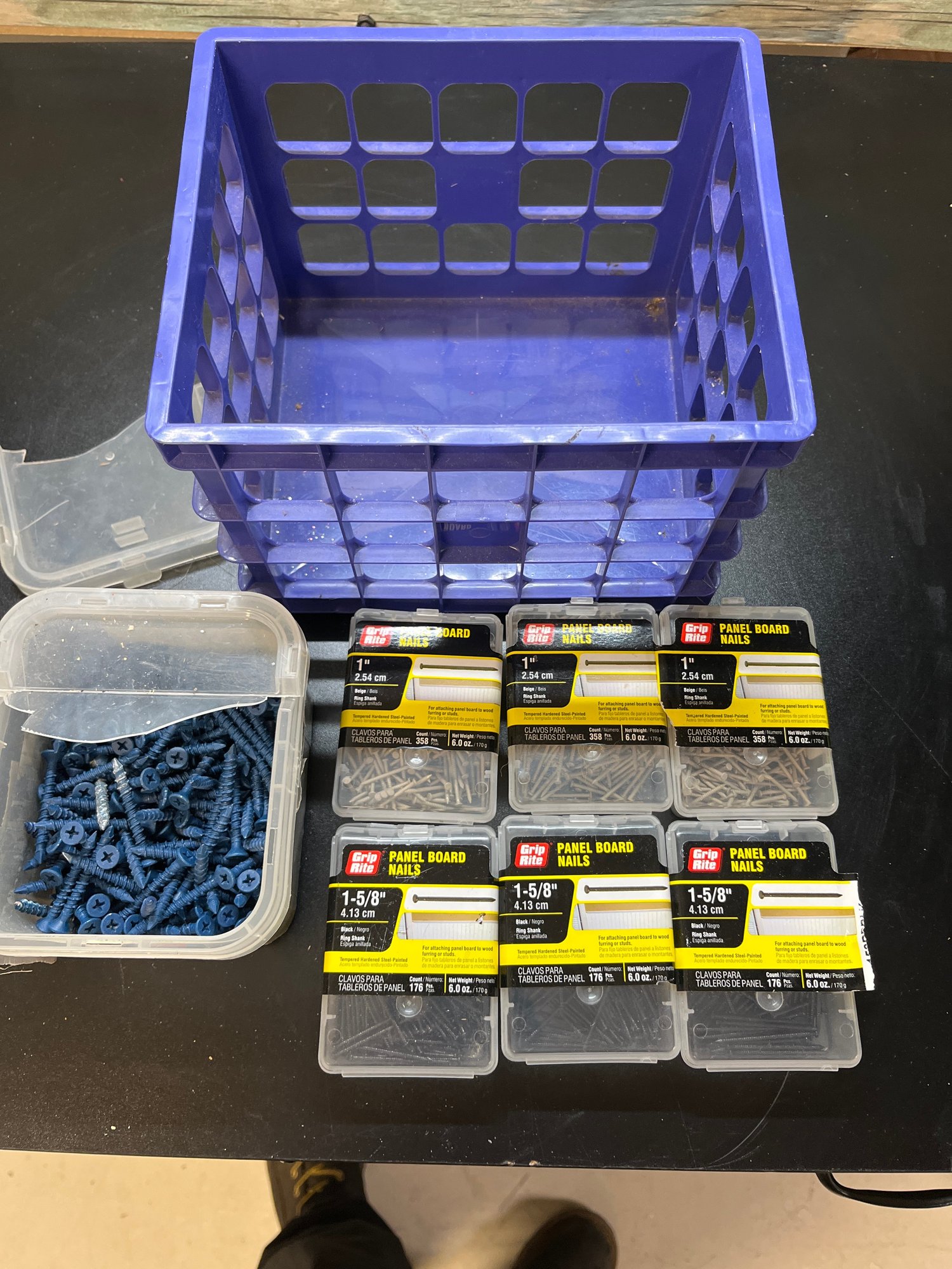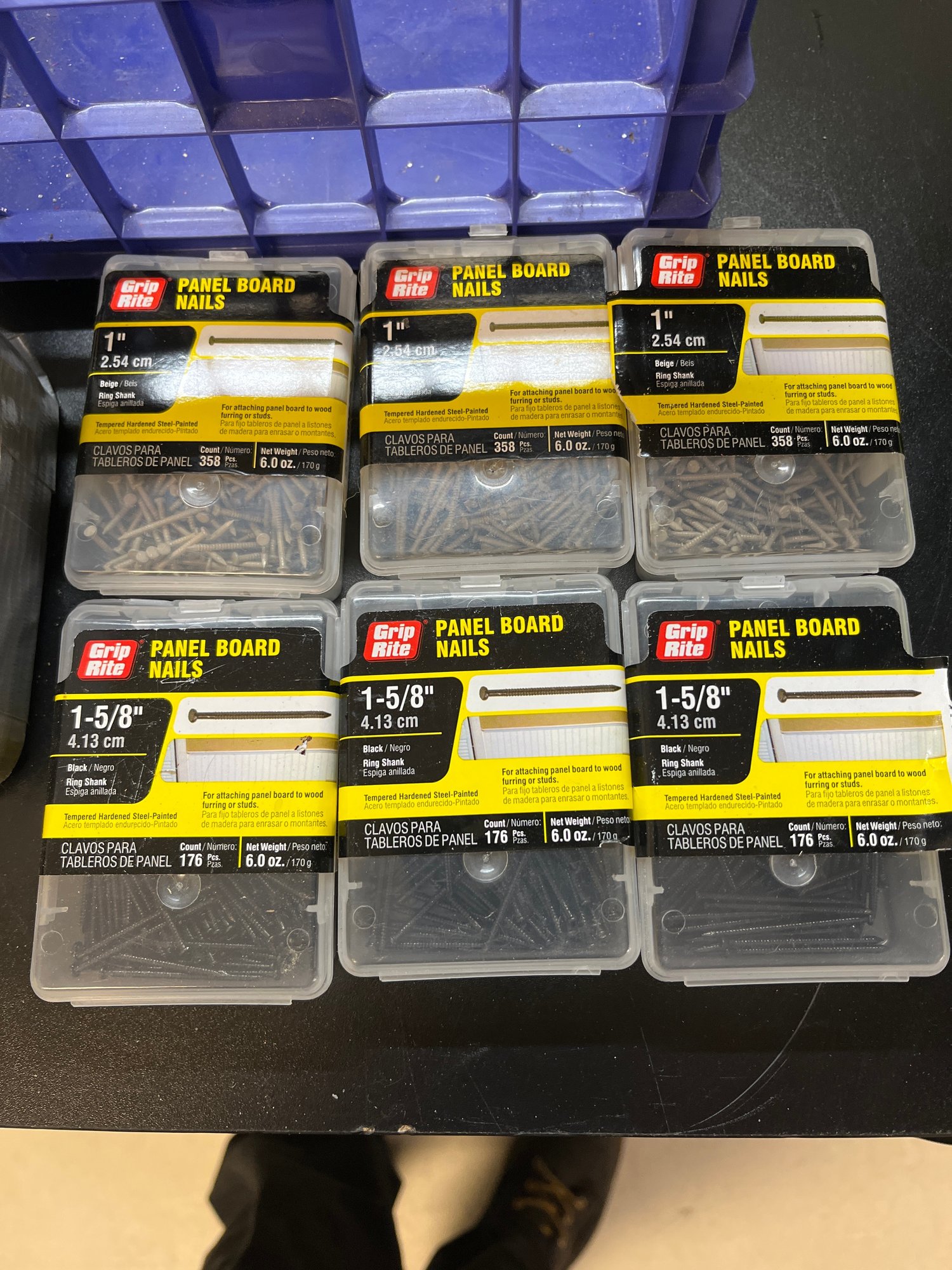 Two boxes of the panel board nails are open. The other two are brand new 3/4 of a thing of inch and three-quarter screw screws. See pictures for details.