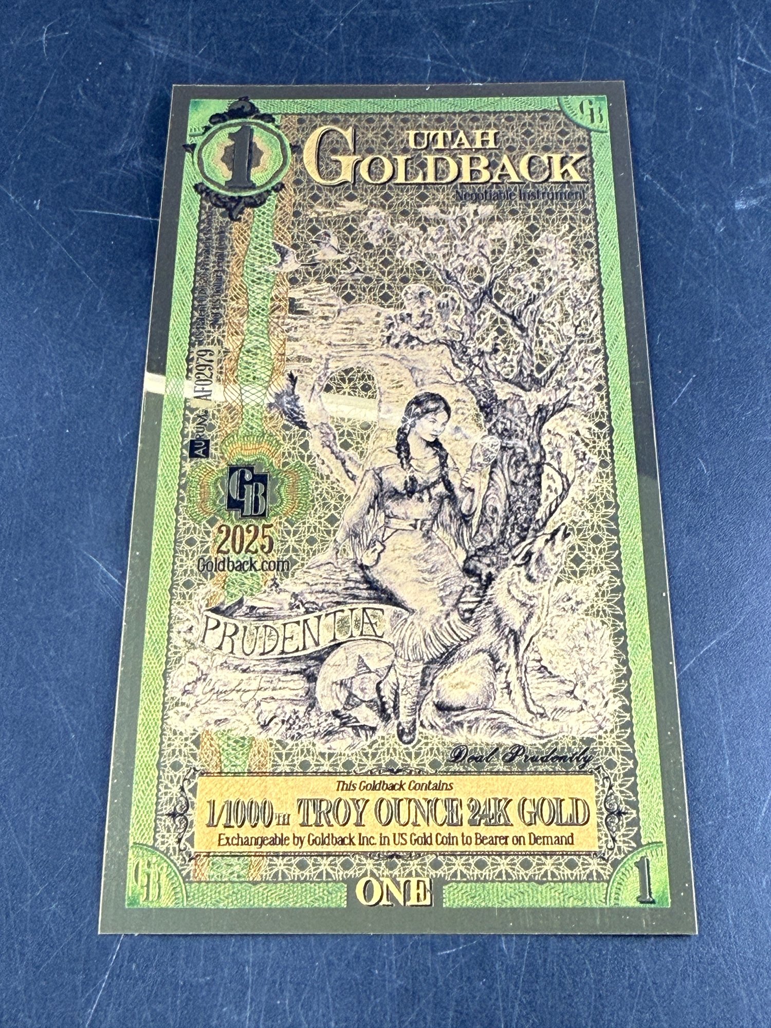 1 Utah GoldBack 1/1000th Troy Ounce 24K Gold