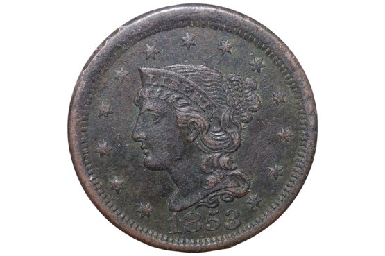 1853 Braided Hair Large Cent - Very Fine