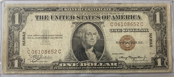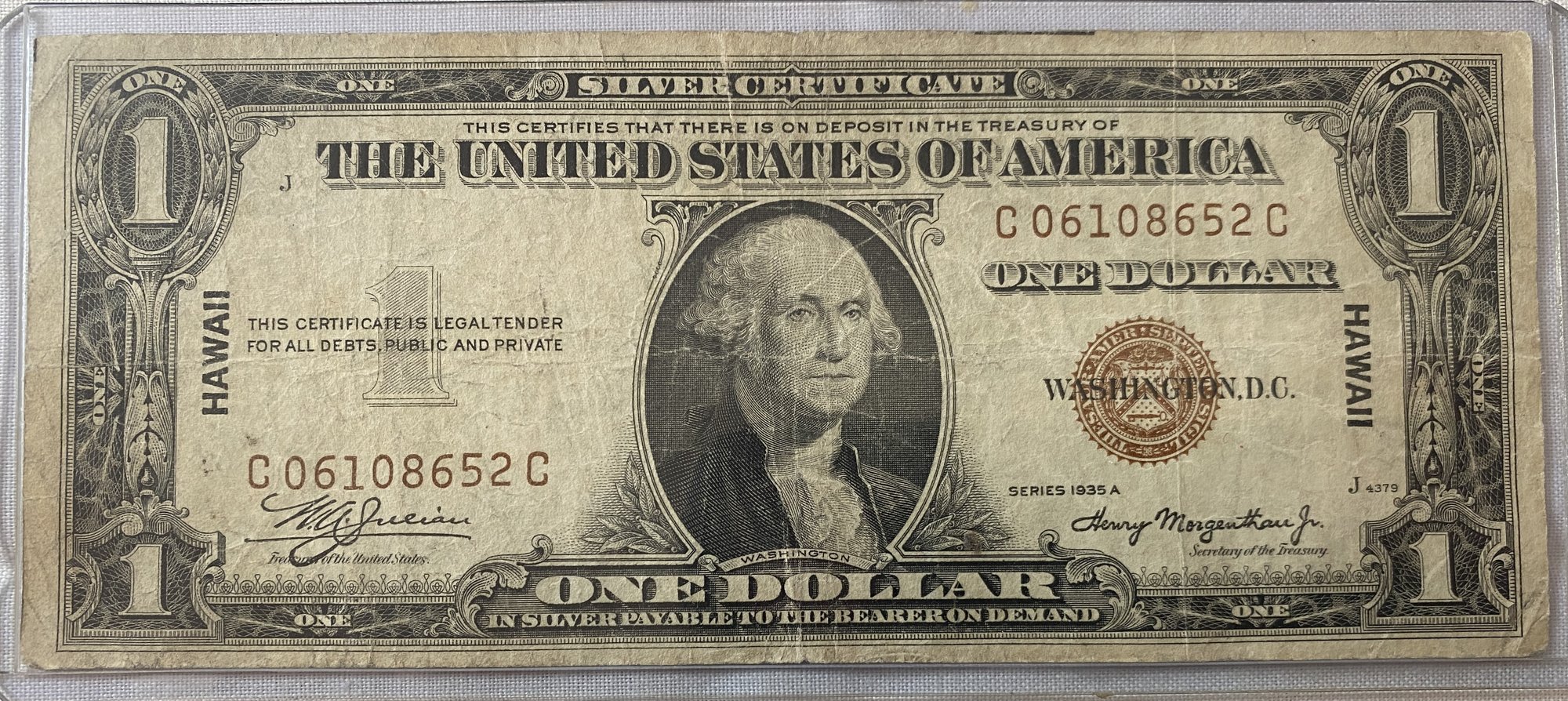 1935 A $1 One Dollar Silver Certificate Hawaii WWII Emergency Issue Note