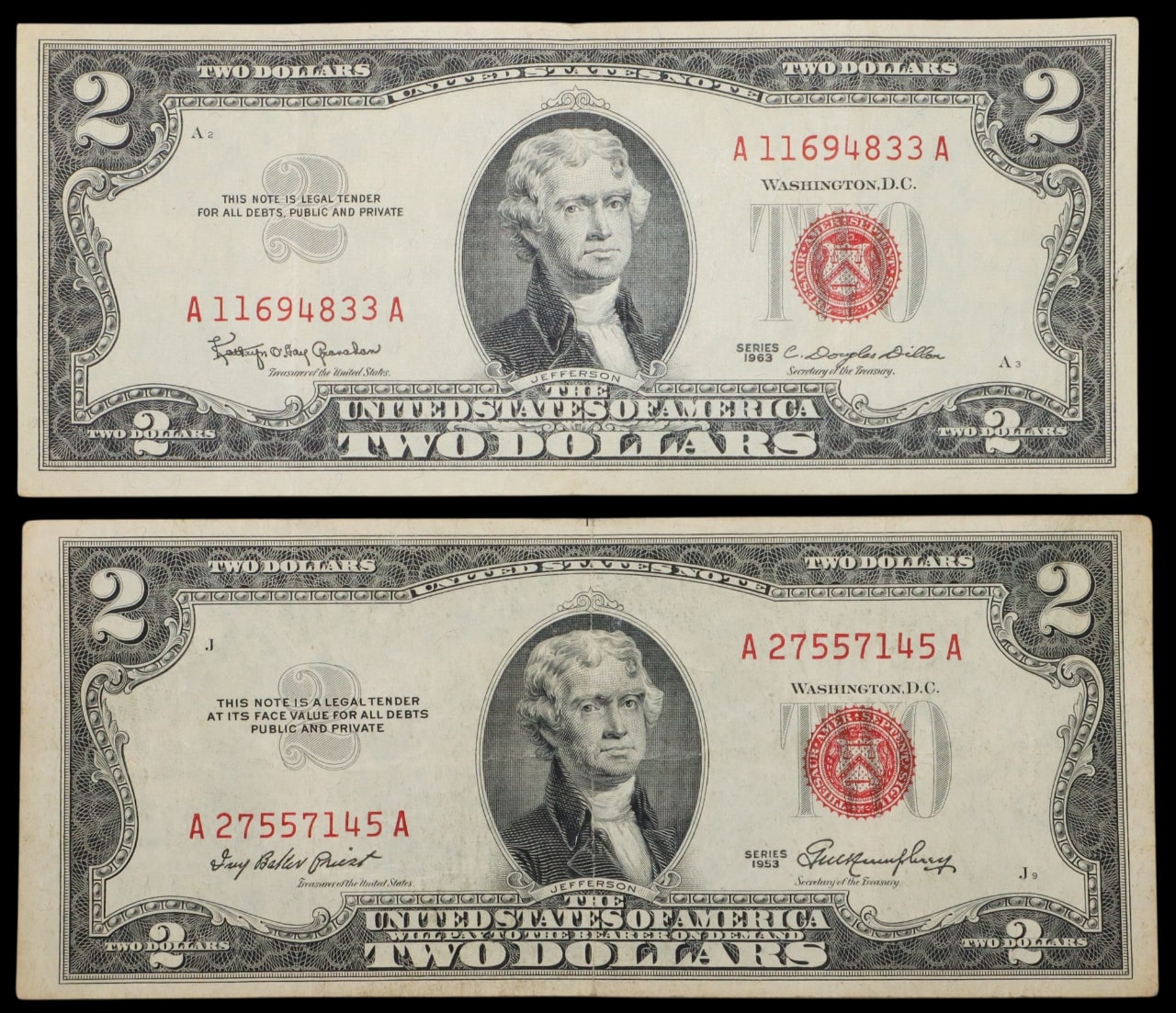 1953/1963 Legal Tender U.S. Note Red Seal Pair