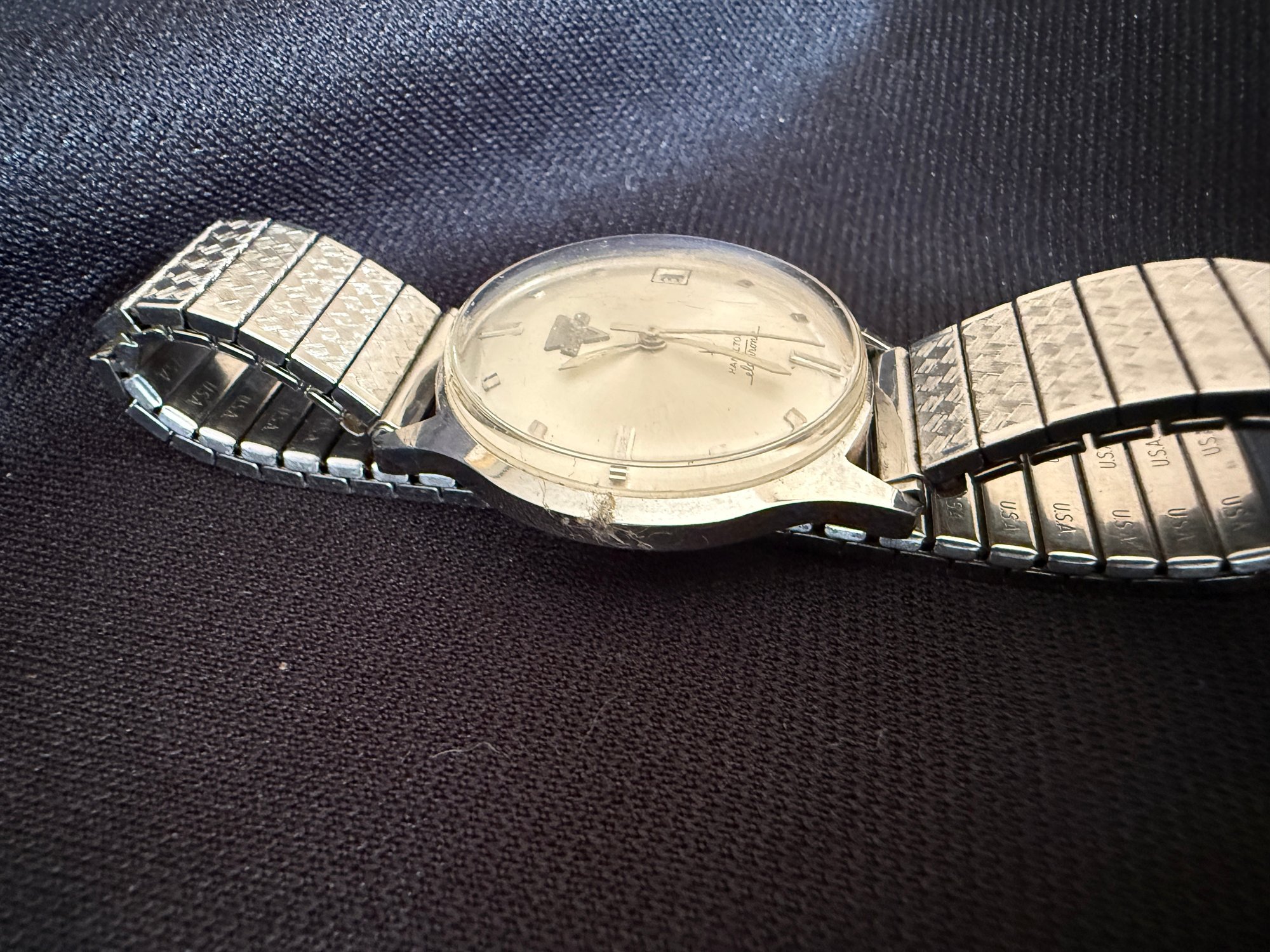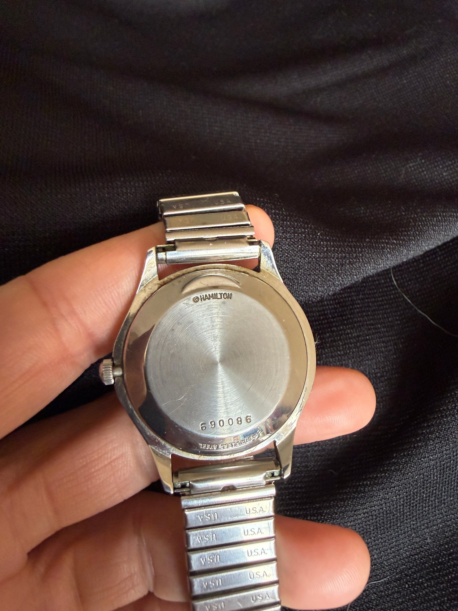 Midcentury modern full stainless steel Armco award watch with 505 movement. Hamilton worked closely with Armco, a stainless steel production company, in the design and production of this award watch. This watch is unique in that Hamilton actually made the cases out of Armco's stainless steel!