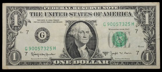 1963-B One Dollar Barr Note Federal Reserve Note Green Seal