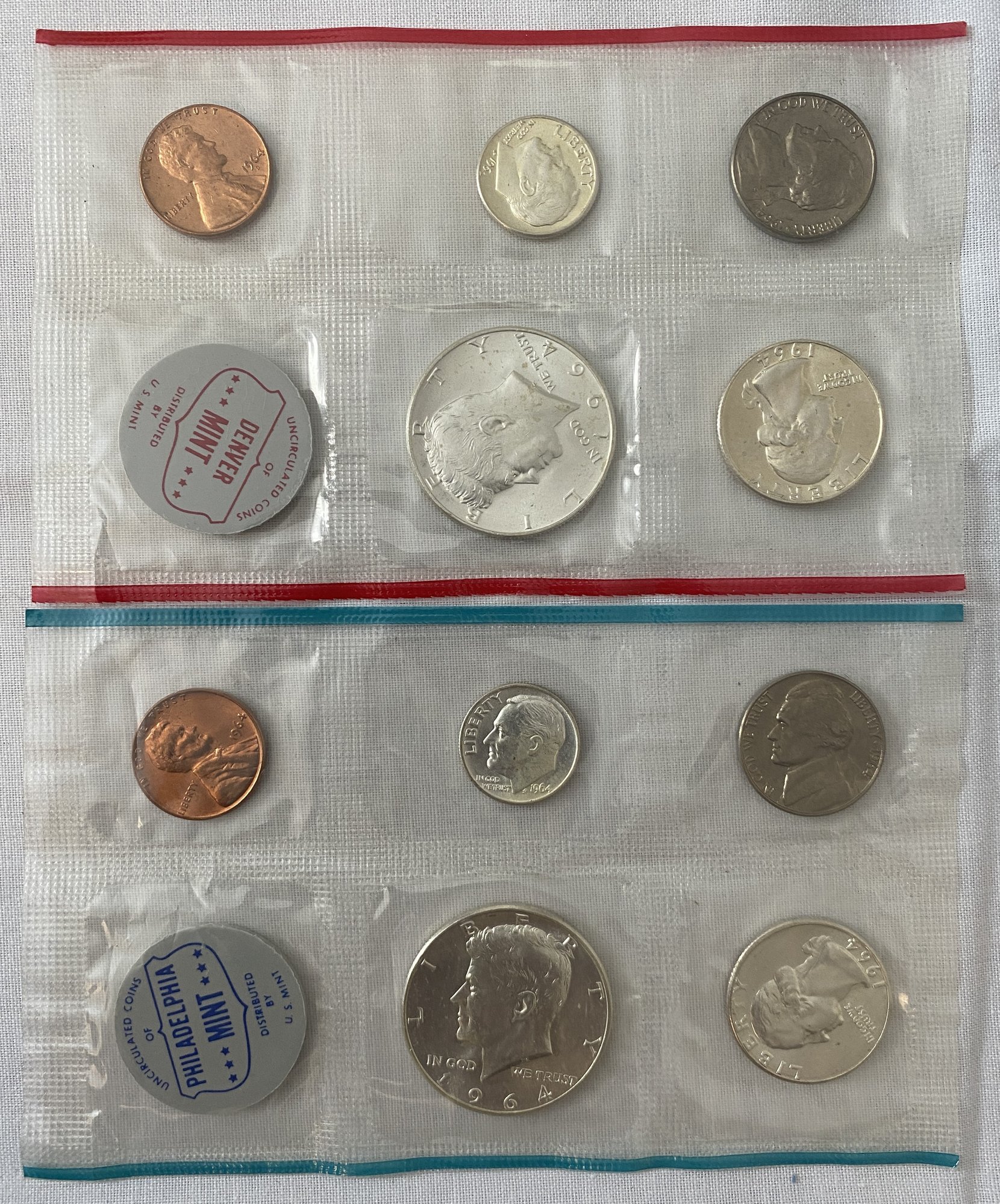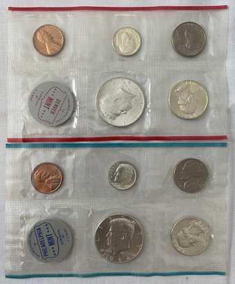 1964 Uncirculated Mint Set Denver & Philidelphia No Envelope 90% Silver Kennedy Half Dollar