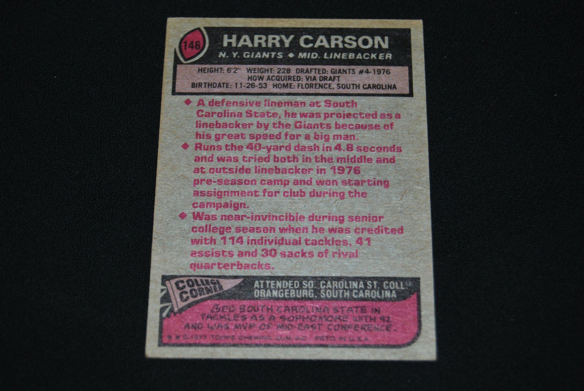 1977 Topps Harry Carson RC #146