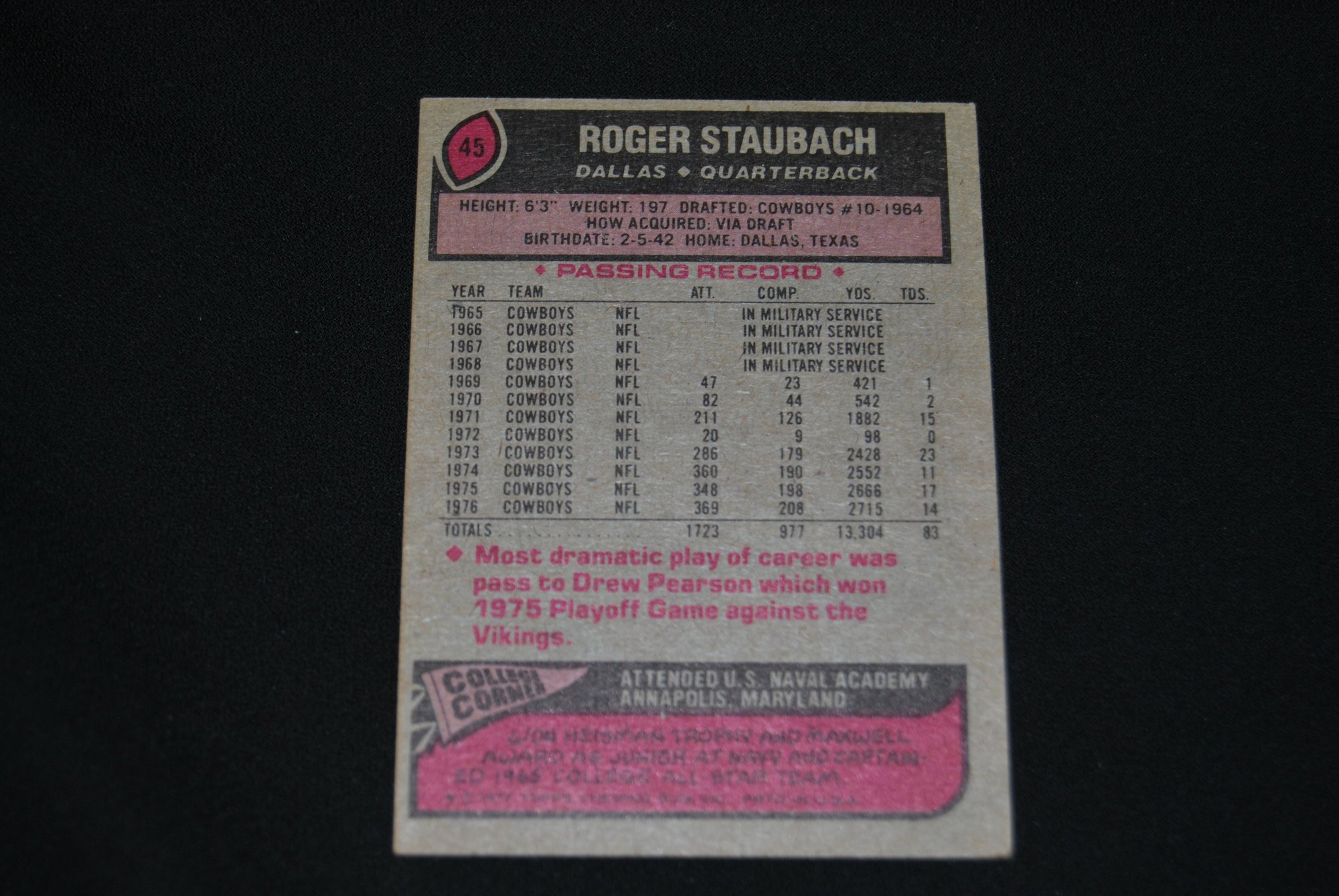 1977 Topps Roger Staubach #45
