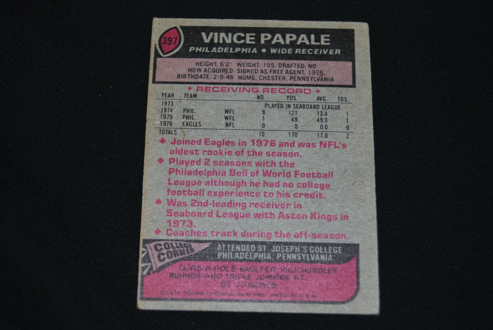 1977 Topps Vince Papale RC #397