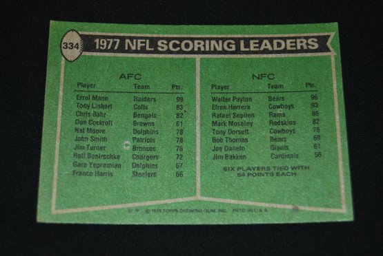 1978 Topps Rushing/ Scoring Leaders With Walter Payton